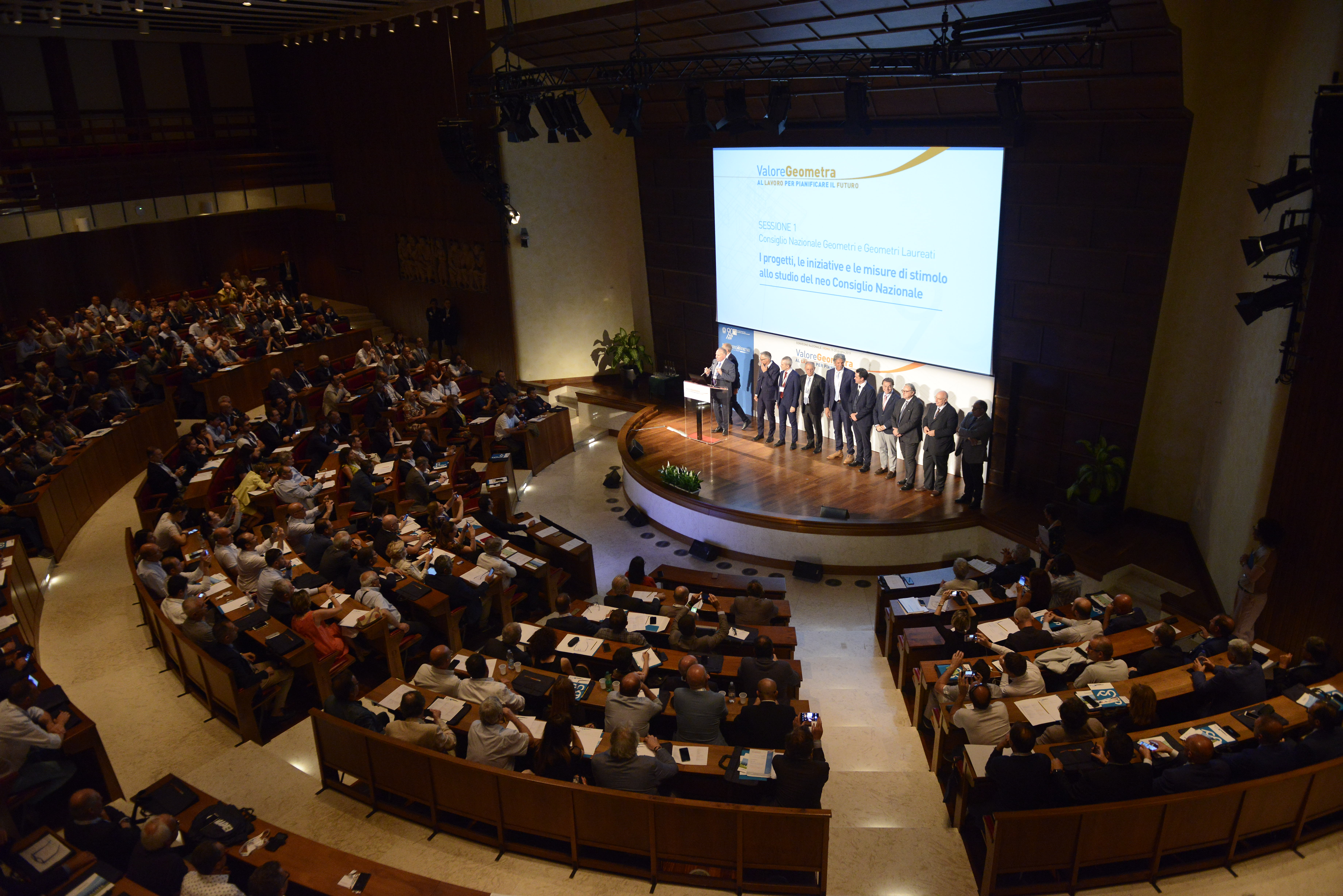 Il presidente nazionale dei geometri, Maurizio Savoncelli, si è posto subito l’impegno di «fornire alla più ampia platea della dirigenza di Categoria, a beneficio degli iscritti, opportunità professionali concrete già previste da recenti disposizioni normative e correlate a competenze specifiche e distintive dei geometri» evidenziando come il contributo dei Geometri è «facilmente rintracciabile in ogni momento storico, fin dal dopoguerra. Siamo stati una categoria che ha rappresentato un valore per il Paese, determinando nella percezione dell’opinione pubblica una consapevolezza talmente forte che – da sempre e sempre più spesso anche oggi – siamo stati e siamo ancora associati ad alcune figure chiave della società civile, come il parroco e il medico. Oggi più che mai siamo gli interlocutori diretti delle istituzioni che governano il Paese, siamo a contatto con le altre professioni; oggi più che mai è giunto il momento per i dirigenti di categoria di assumersi la responsabilità di indicare il futuro della professione. Il confronto che emerge da questa assise è una reale occasione di formazione, di analisi sulle possibilità che offre il mercato e le potenzialità della nostra professione per intraprendere la strada del futuro. In un momento come questo era necessario innescare un cambiamento, un ulteriore impegno e in una fase che segna un riconoscimento così esplicito alla rappresentanza della nostra Categoria, deve seguire l’individuazione di nuove opportunità e di nuove soluzioni, anche per la governance e il management delle relazioni con i Collegi e con la Categoria in generale». Qui il video celebrativo