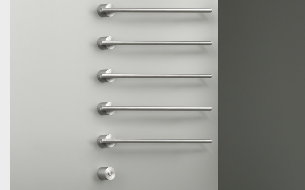 Equilibrio, disegnato da Natalino Malasorti per Cea Design, è uno scaldasalviette e scaldaccappatoio elettrico in acciaio inossidabile. Il sistema modulare è composto da uno o più elementi disponibili in due lunghezze, da 580 mm e da 1060 mm, installabili sia in verticale che in orizzontale. Alimentato da energia elettrica a basso voltaggio secondo i principi del risparmio energetico di tutta la produzione dell’azienda, lo scaldasalviette si adatta facilmente a ogni ambiente domestico e pubblico trovando la giusta dimensione secondo lo spazio disponibile.