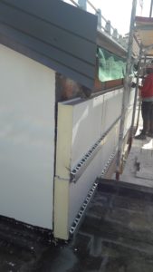 Sul correntino sono state comodamente fissate, mediante appositi ancoraggi, le lastre metalliche scelte per il rivestimento di copertura, che ben completano esteticamente l’aspetto moderno e ricercato dell’involucro.