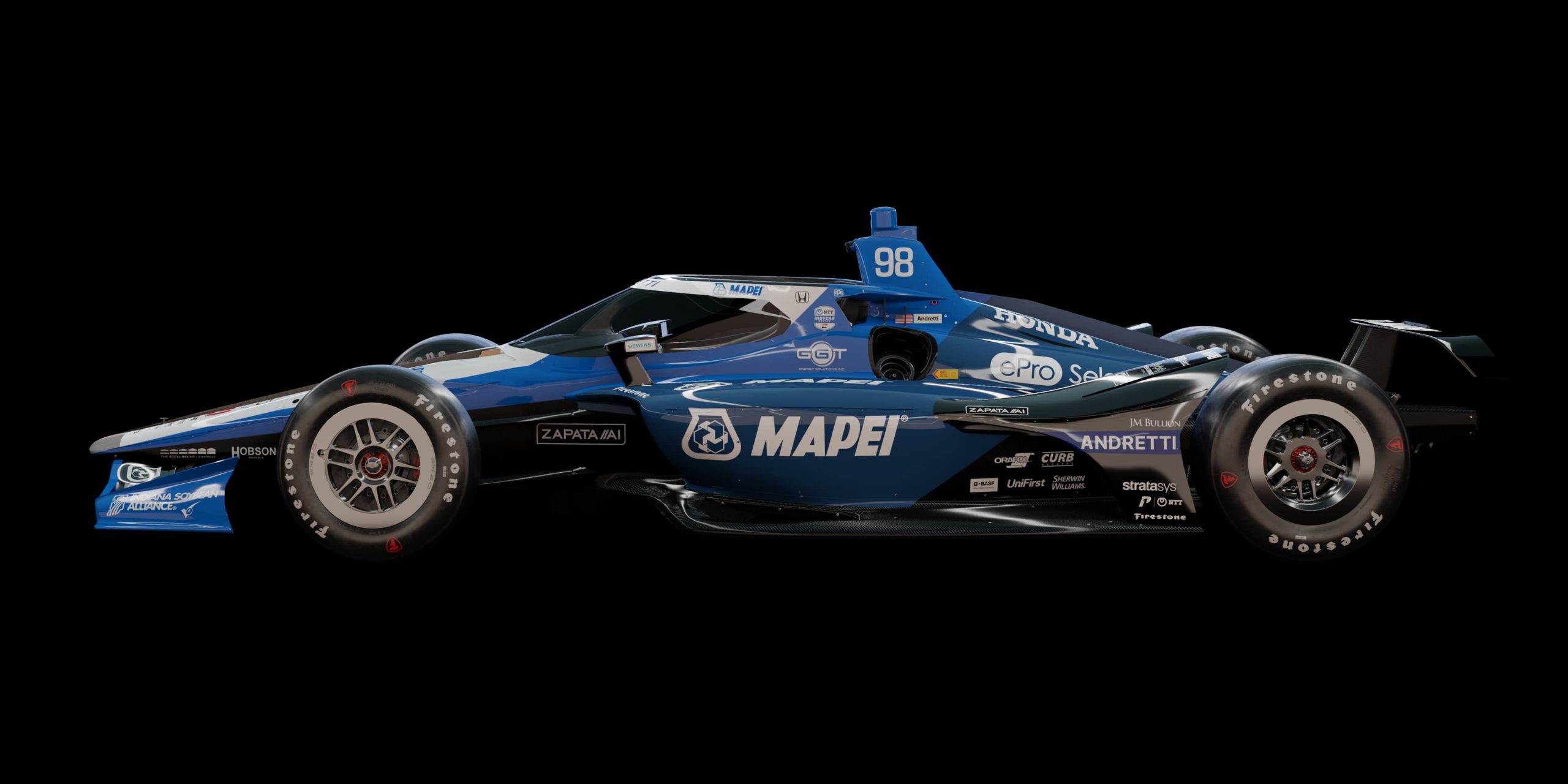 In veste di sponsor principale della vettura numero 98 alla Indy 500 del 2024, Mapei è entusiasta di presentare questa partnership sul circuito. La vettura sfoggia un design elegante in blu Mapei e è impreziosita dal logo dell’azienda, simbolo del suo impegno verso l’eccellenza, l’innovazione e le prestazioni.