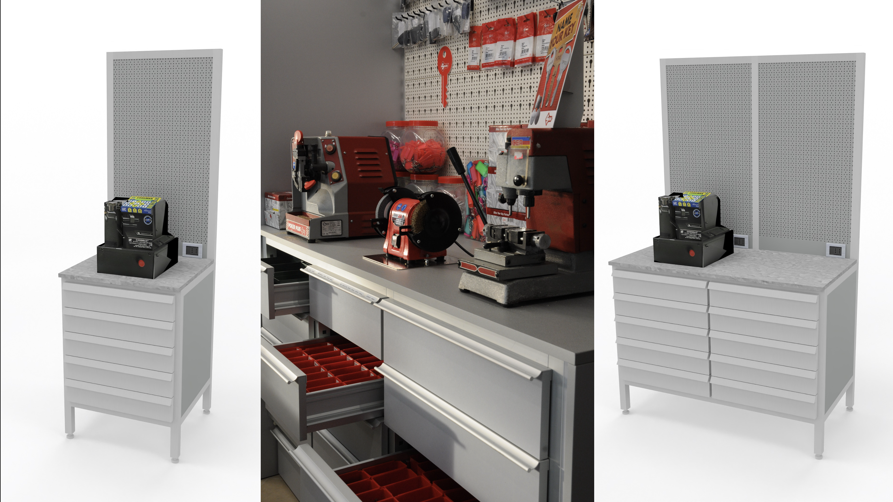 Non è necessaria, all’interno del punto vendita, la presenza di una grande area da destinare a questo servizio, bastano anche superfici ridotte (lo spazio minimo è di 1,20 m) in funzione delle quali Selfit progetta e realizza il corner dedicato che può comprendere l’angolo di duplicazione chiavi con o senza scaffalatura, anche con ante scorrevoli, cassetti con portate importanti per lo stoccaggio delle chiavi grezze, eccetera.
