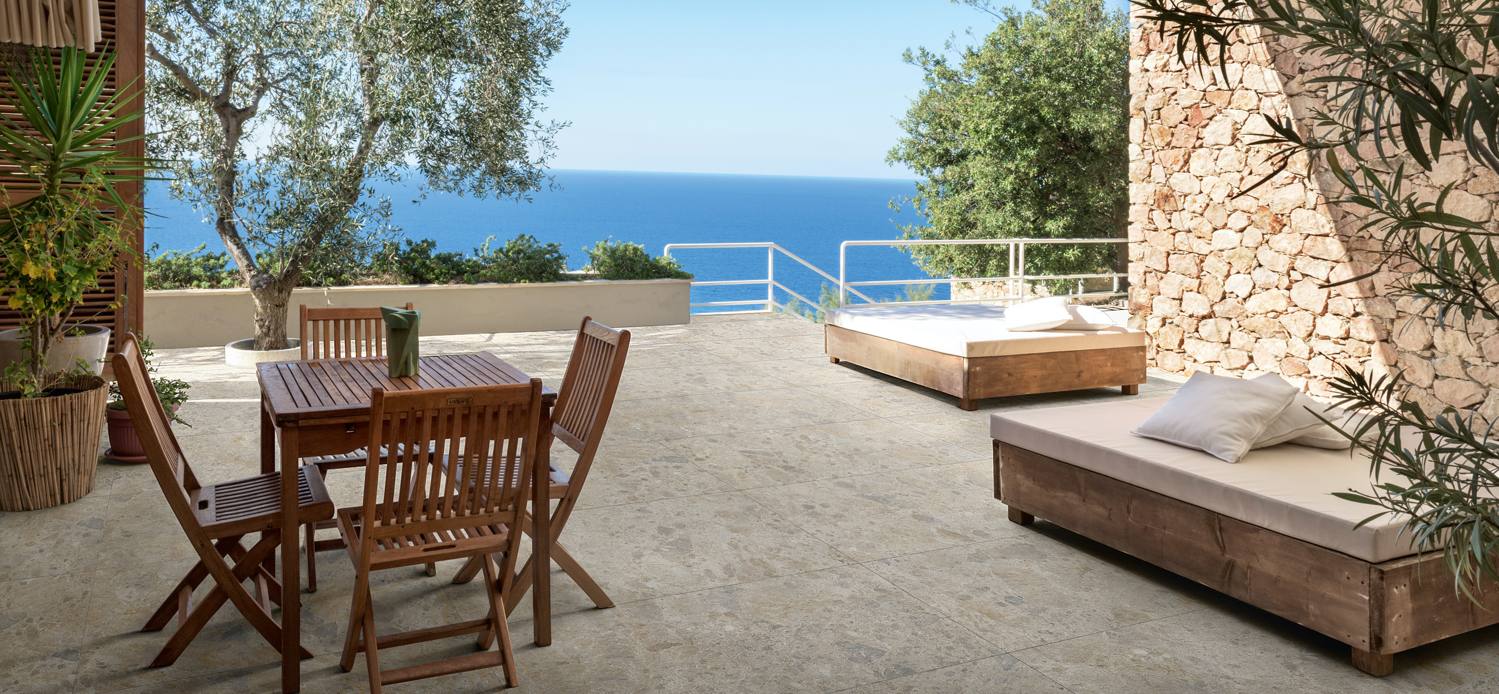 Questa collezione è ideale per pavimenti e rivestimenti indoor e outdoor e presenta una doppia personalità: sobria e minimale, nei colori Blanco, Arena e Greige, e di forte carattere in altrettante varianti di colore, dal grigio al marrone, con l’inclusione di ciottoli di differenti forme, dimensioni e colori che caratterizzano la superficie. Il risultato è una materia morbida al tatto, rafforzata dall’avanzata soluzione antiscivolo StepWiseTM.