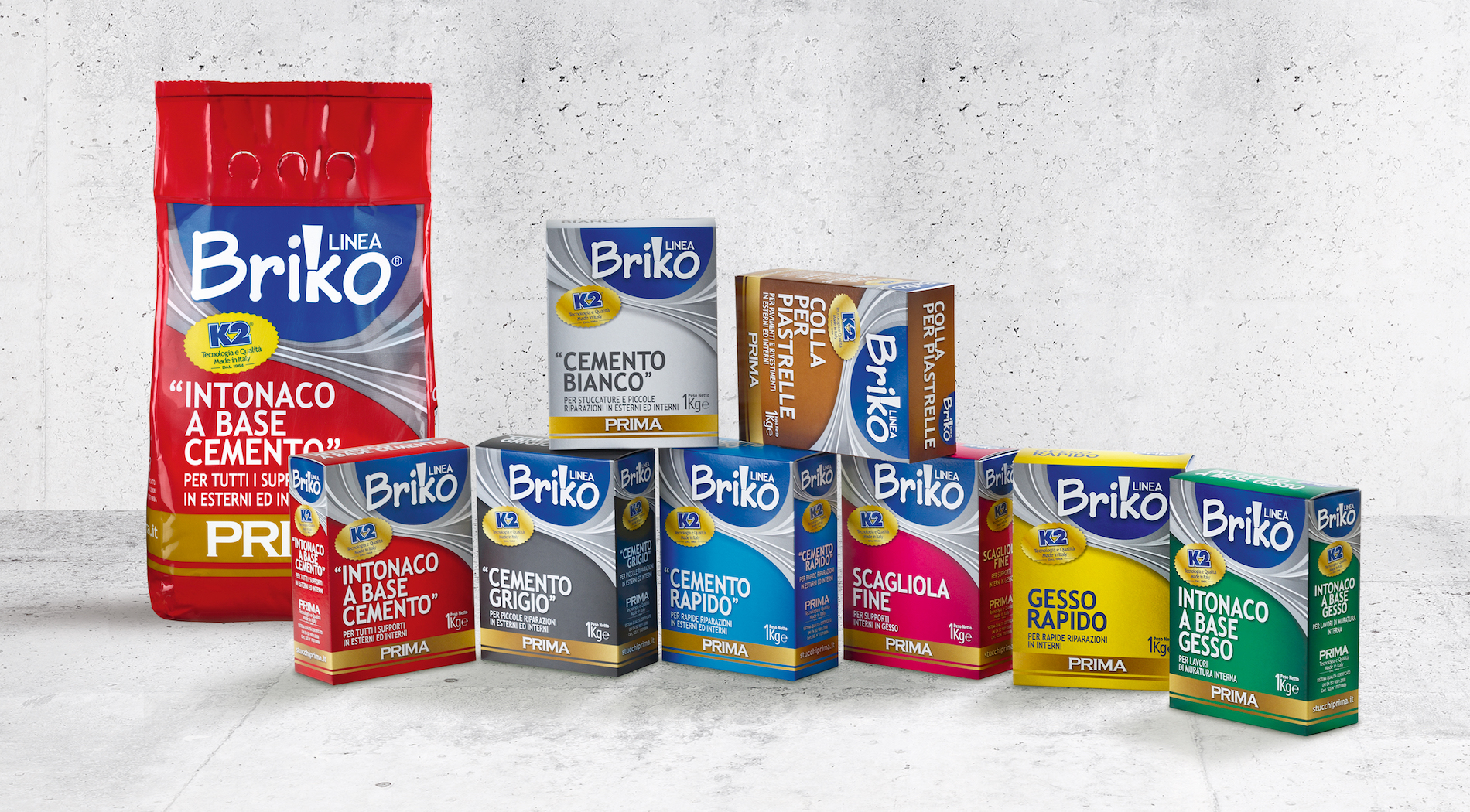 «I prodotti della linea Briko, formulati dal laboratorio della Prima, offrono una gamma eterogenea per il “fai da te” e l’edilizia leggera. Il suo design rinnovato ed unico fornisce indicazioni immediate al cliente e permette uno stoccaggio semplice, veloce e pulito nelle scaffalature dei venditori» Michela Mazzuferi, Amministratore delegato Prima