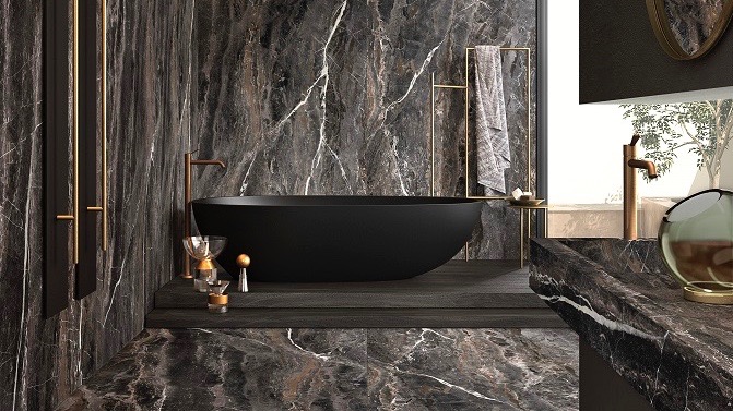 La collezione si divide in due tipi di effetti; Héritage, che si ispira a marmi preziosi dalle cromie delicate, e Scénique composta da proposte ricche di personalità. La prima comprende tre diverse varianti: Calacatta, Paonazzetto e Tundra. Tre opzioni che trasportano gli osservatori in una dimensione di luminosità.