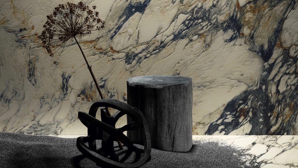 Un mix di lavorazioni artigianali come sabbiatura, acidatura e spazzolatura, generalmente applicate ai marmi dopo l’estrazione in cava, vengono fedelmente riprodotte per rendere le superfici tridimensionali, accentuandone la naturalezza cromatica, le trame variegate e i bassi livelli di riflessione tipici delle materie d’ispirazione.