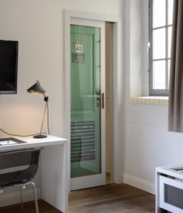 Un fattore determinante nella scelta delle porte scorrevoli Eclisse è stato, infatti, il fatto che scompaiono completamente nel controtelaio montato nella parete. Ogni porta scorrevole permette così di guadagnare spazio: un argomento decisivo per la gestione economicamente efficiente di un hotel.