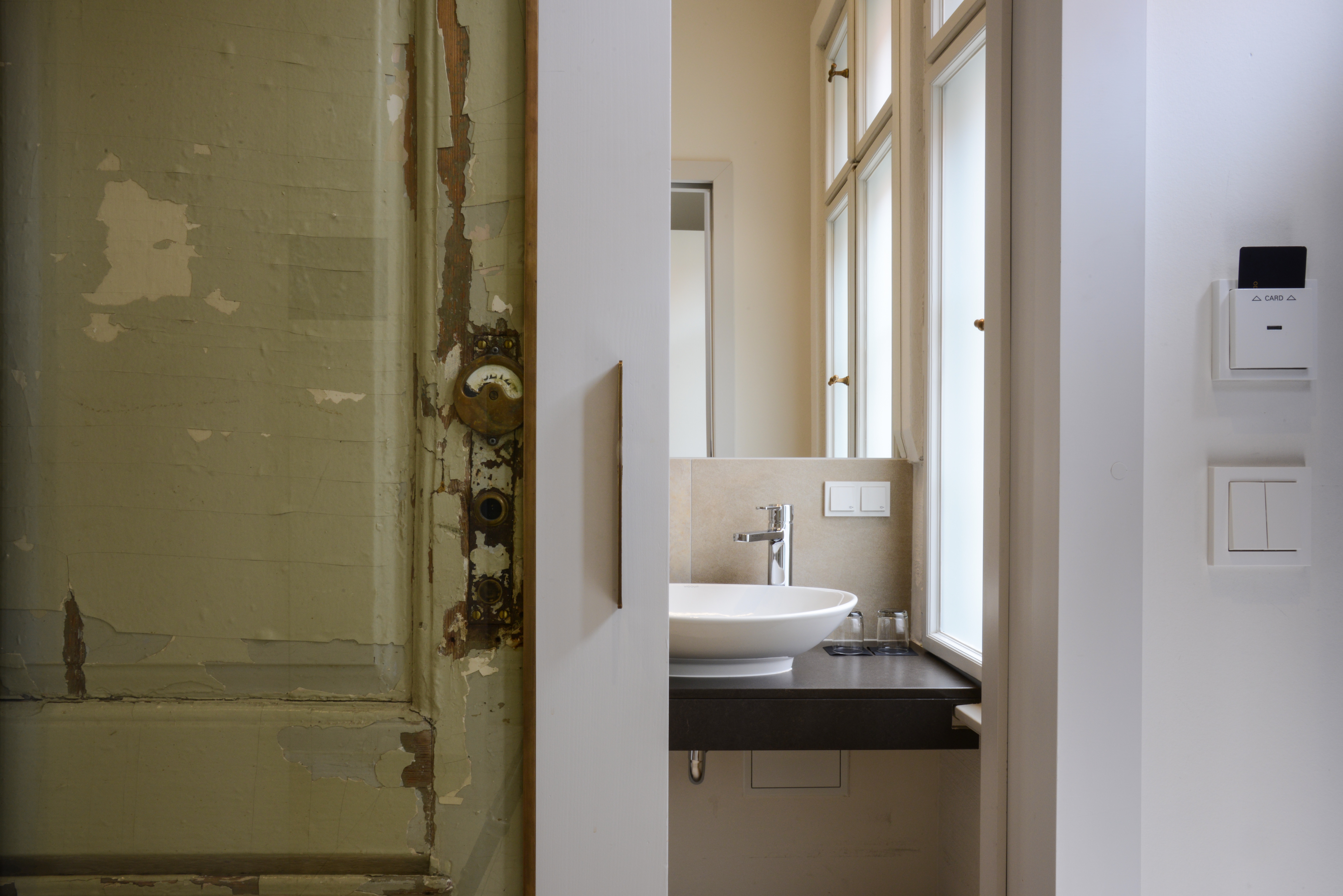 Unico riassume perfettamente la funzionalità e la qualità dei sistemi Eclisse, che sono affidabili, robusti e adattabili alle più differenti esigenze, sia nell’ambito degli interventi di ristrutturazione che di nuova costruzione. Unico può alloggiare al proprio interno qualsiasi pannello porta scorrevole standard presente sul mercato. Al sistema è possibile applicare accessori, tra cui Rallenty Soft, il dispositivo che permette alla porta scorrevole di rallentare e chiudersi dolcemente. Il controtelaio Eclisse è costituito da una robusta struttura metallica ed è progettato in modo tale che, indipendentemente dalla versione per pareti a secco oppure intonaco, consenta un design molto flessibile delle ante, con un peso massimo fino a 150 chili. Grazie a queste soluzioni, gli specialisti di Restoration Werkstätten Berlin GmbH hanno potuto recuperare le porte delle cabine storiche del nuovo hotel.