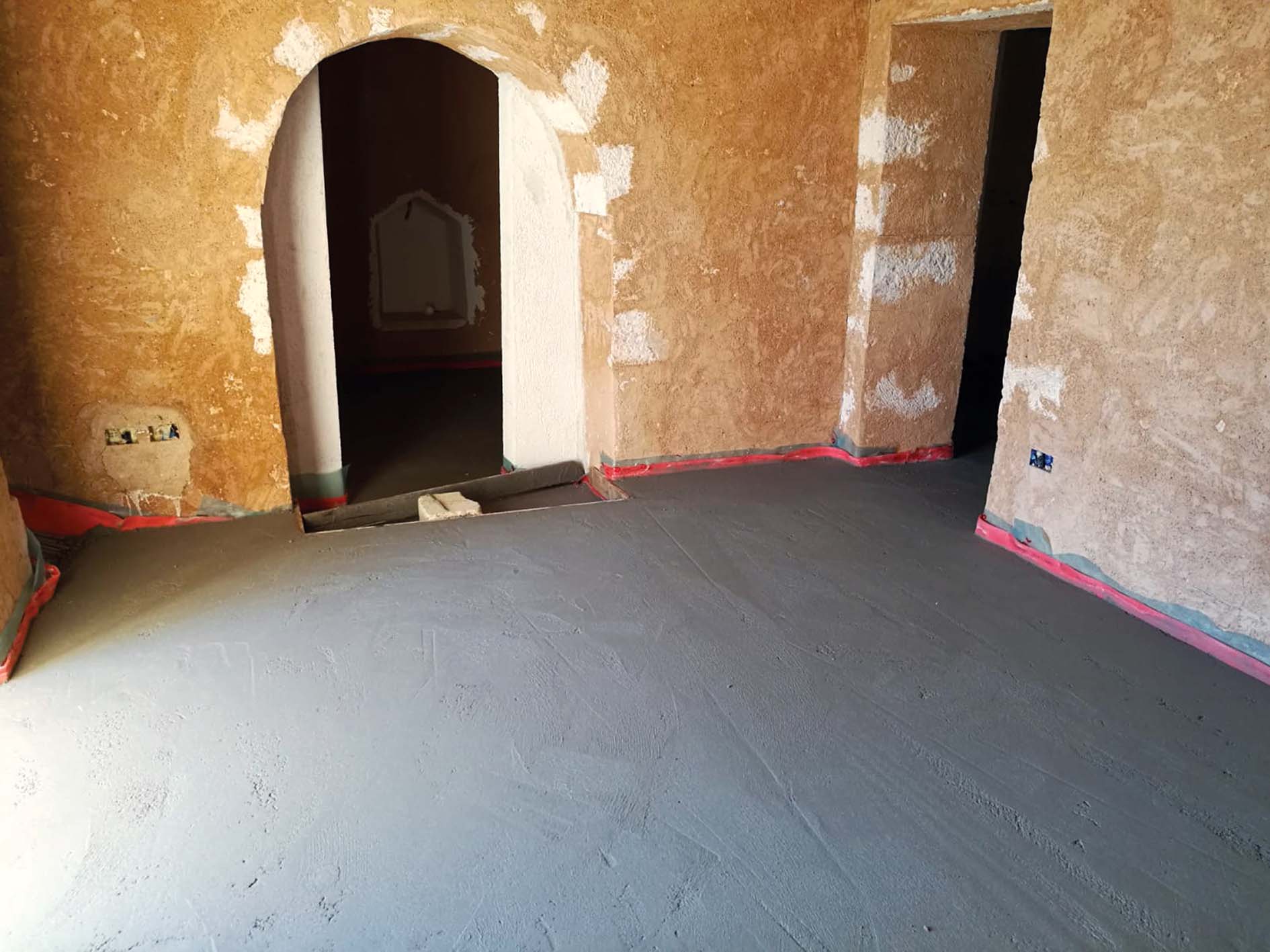 Il massetto di finitura è stato posto su tutta la superficie del piano terra dell’edificio, per un’estensione totale di circa 150 m2, in un complesso di più trulli comunicanti collegati tra loro per mezzo di aperture.