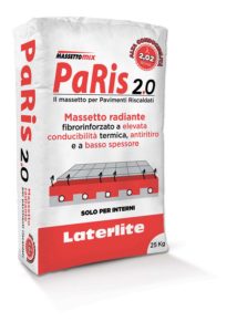 Superiore efficienza energetica e prestazioni certificate sono il baricentro tecnologico della gamma di massetti di finitura Laterlite di cui fa parte il massetto ad alta conducibilità PaRis 2.0. Fibrorinforzato, antiritiro e resistente alla compressione (250 kg/cm²), PaRis 2.0 permette la realizzazione di superfici sino a 150 m² senza giunti e reti di rinforzo, con una conseguente maggiore qualità e velocità di posa in opera della pavimentazione.