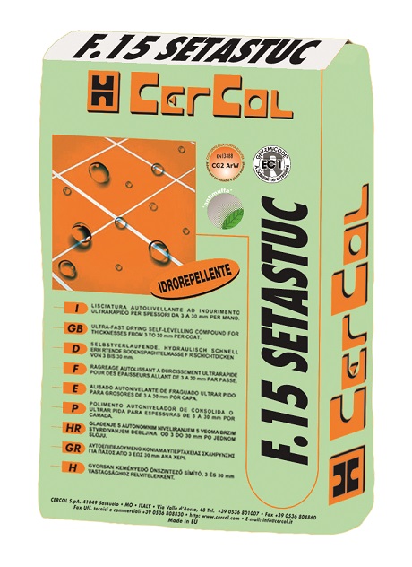 F.15 Setastuc di Cercol è un fugante monocomponente idrorepellente e antimuffa a base di cementi speciali a elevata resistenza all’abrasione e compressione, quarzo e additivi sintetici. La finitura è liscia a effetto seta. Idoneo per la stuccatura di fughe di ampiezza compresa fra 0 e 6 millimetri, in qualsiasi tipo di superfici ceramiche (clinker, gres porcellanato), mosaici e pietre naturali (marmi e graniti).