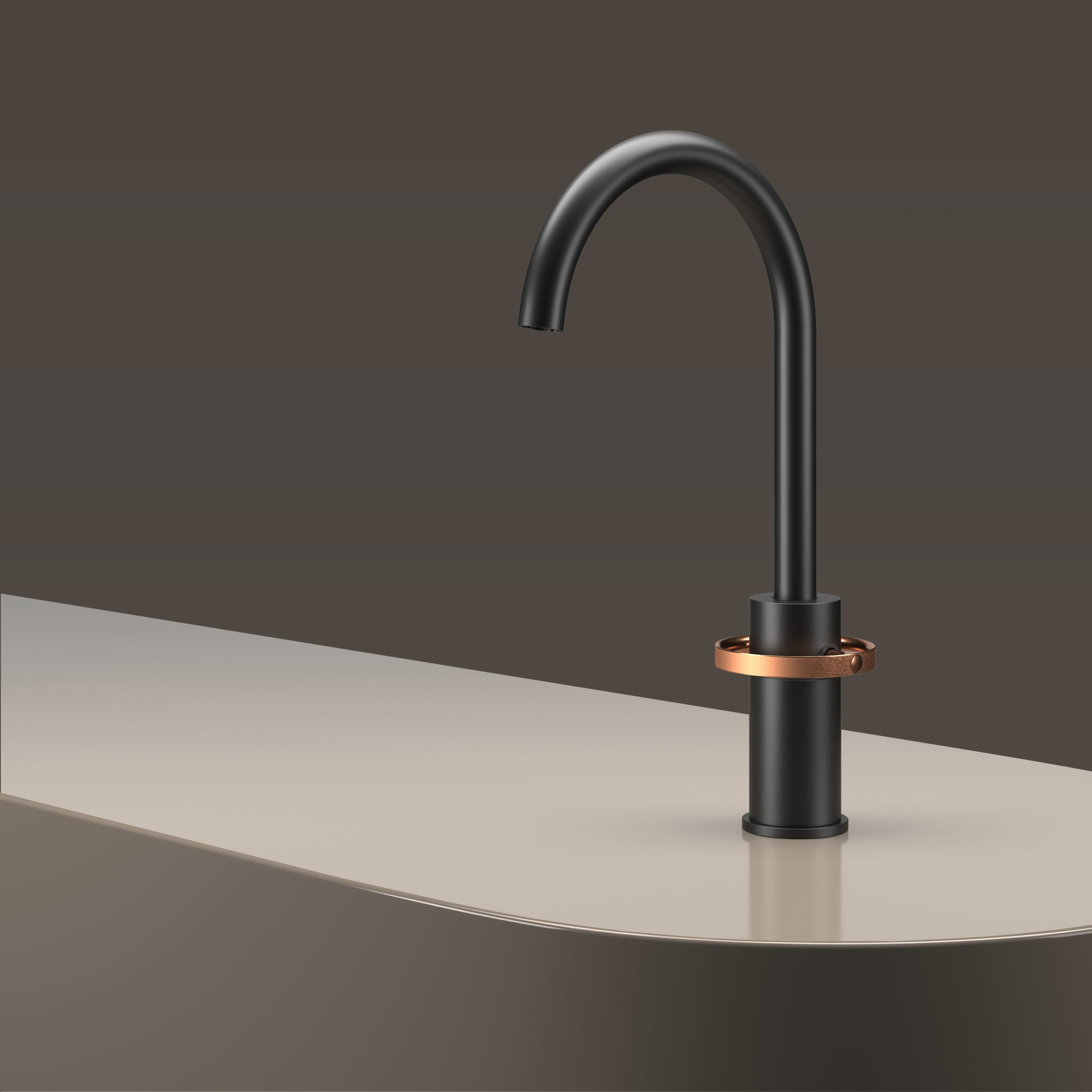 Con Charm i designer interpretano il rubinetto a miscelazione assiale. La leva concentrica di Charm sembra fluttuare nel vuoto e lo spazio tra il rubinetto e la leva crea un senso di sospensione inaspettato che isola l’anello dal resto del corpo.