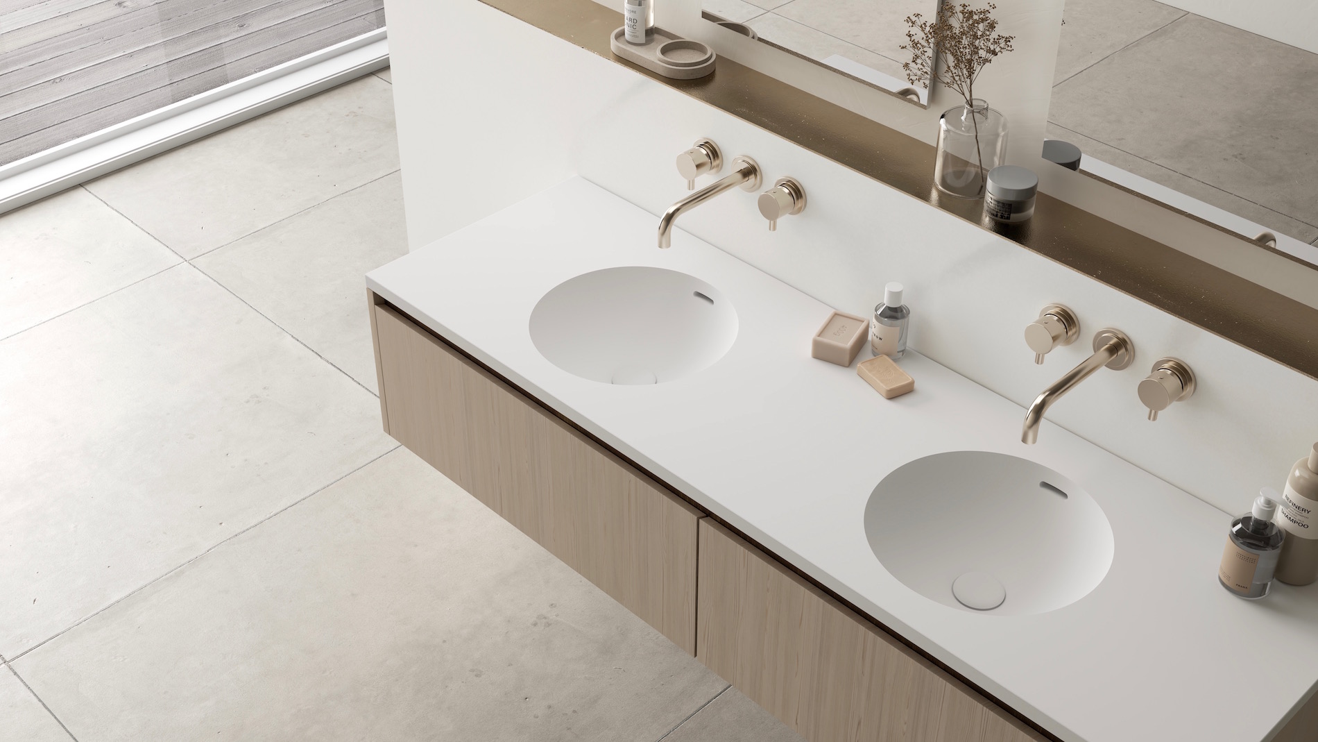 Trovano spazio nella nuova gamma di lavabi anche sette nuovi modelli da incasso progettati per essere integrati in un ripiano in Himacs. Tutti i lavabi in Himacs sono realizzati utilizzando un processo di fusione ad alta tecnologia, che assicura la massima qualità del prodotto e un’incredibile flessibilità nella progettazione.