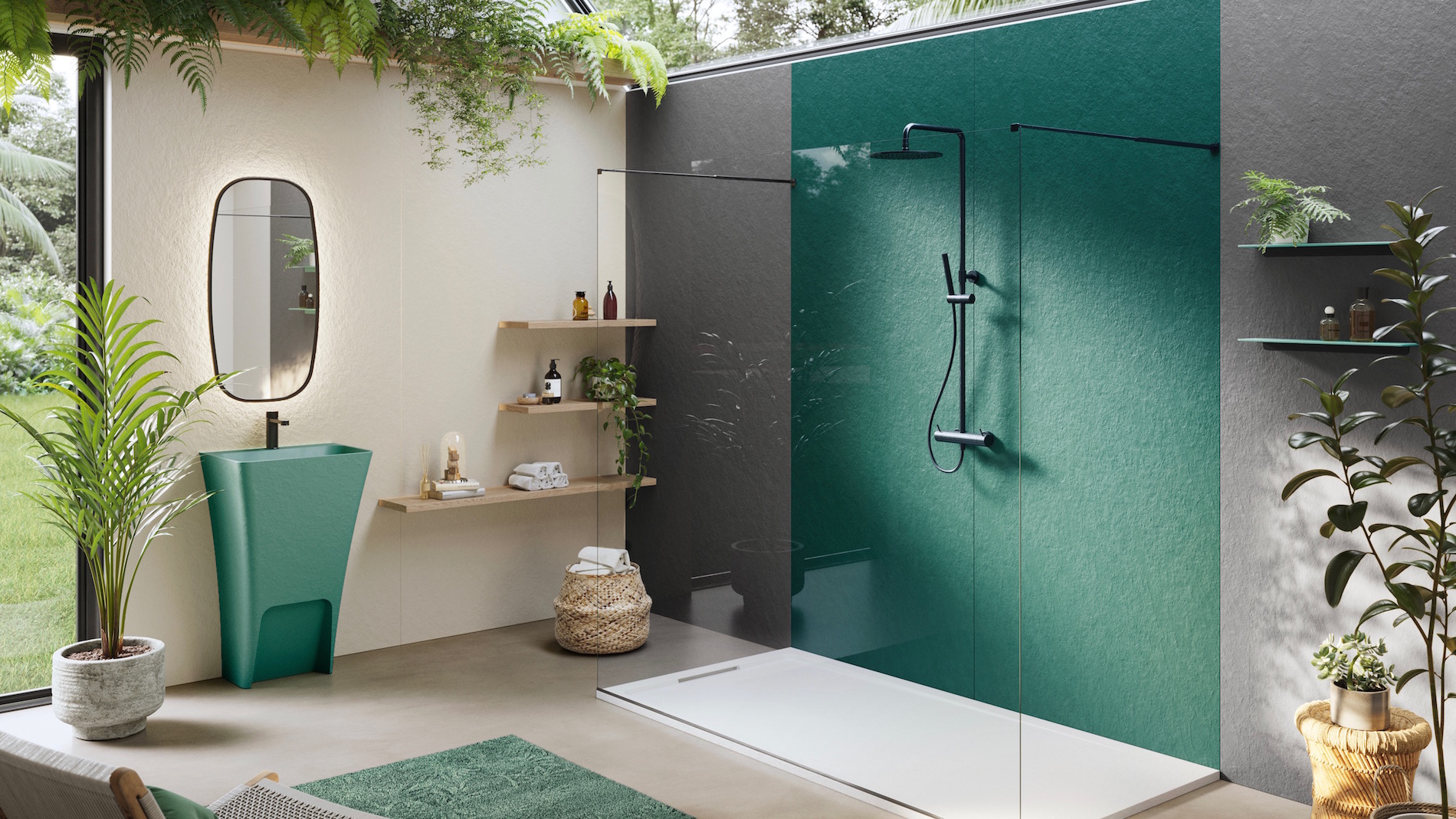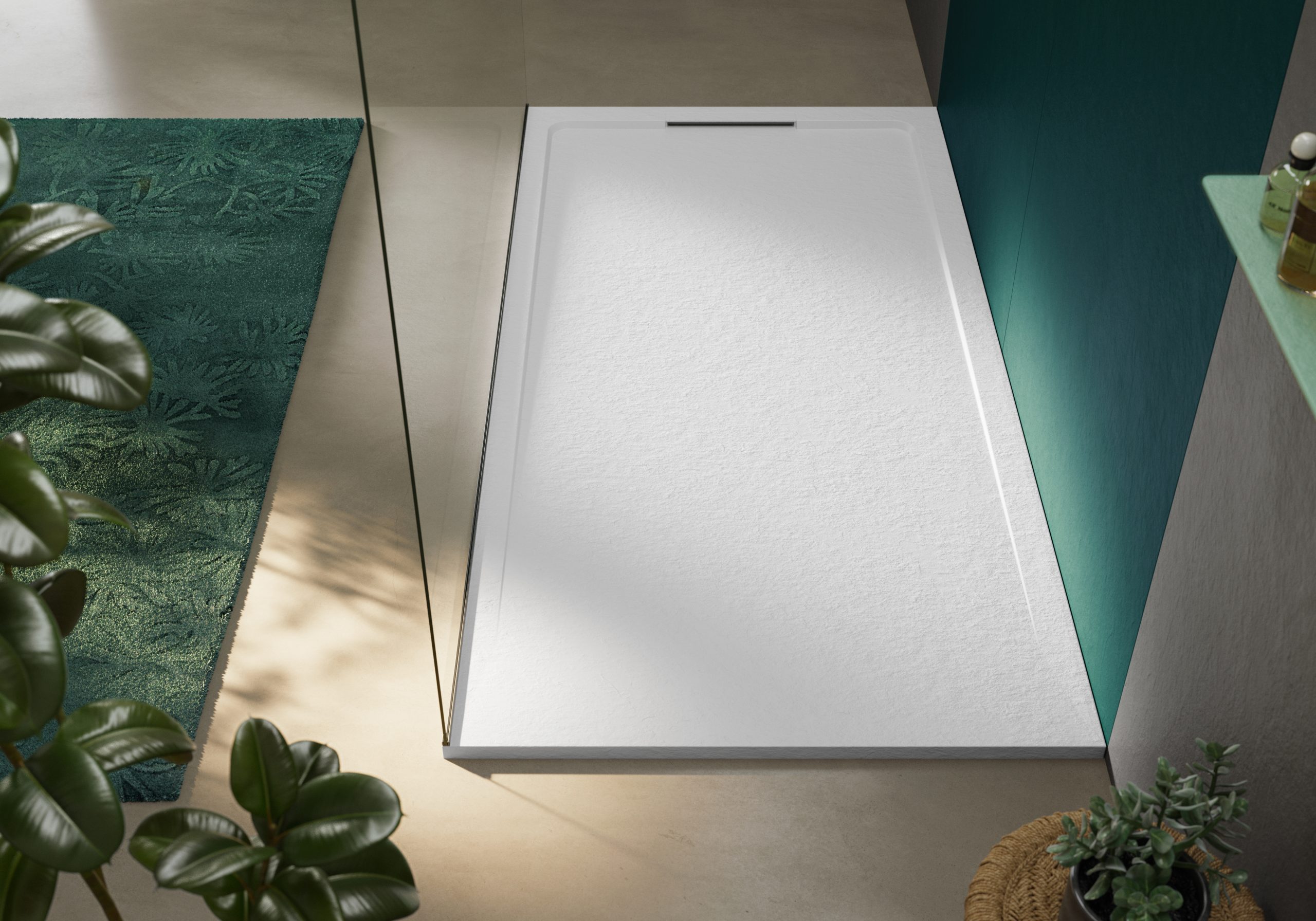 Halo Slate è la nuova collezione di piatti doccia Acquabella. Una cornice microtexturizzata percorre il telaio, diventando sempre più definita al culmine della griglia di drenaggio, creando un lieve contrasto con la texture effetto lavagna Slate della struttura.