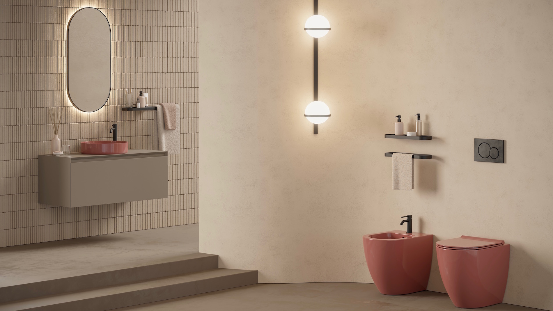 La linea dei sanitari, archetipo del design contemporaneo, combina solidità e concretezza, con vasi e bidet sospesi e da terra, dotati di sedili a chiusura rallentata e delle più avanzate innovazioni tecnologiche. Tutti i prodotti sono trattati con il sistema aliglaze+, uno smalto antibatterico che elimina fino al 99,9% dei batteri grazie alla presenza di ioni d’argento, titanio e zinco. Questo smalto è anche resistente all’usura e all’abrasione, garantendo efficacia a lungo termine.