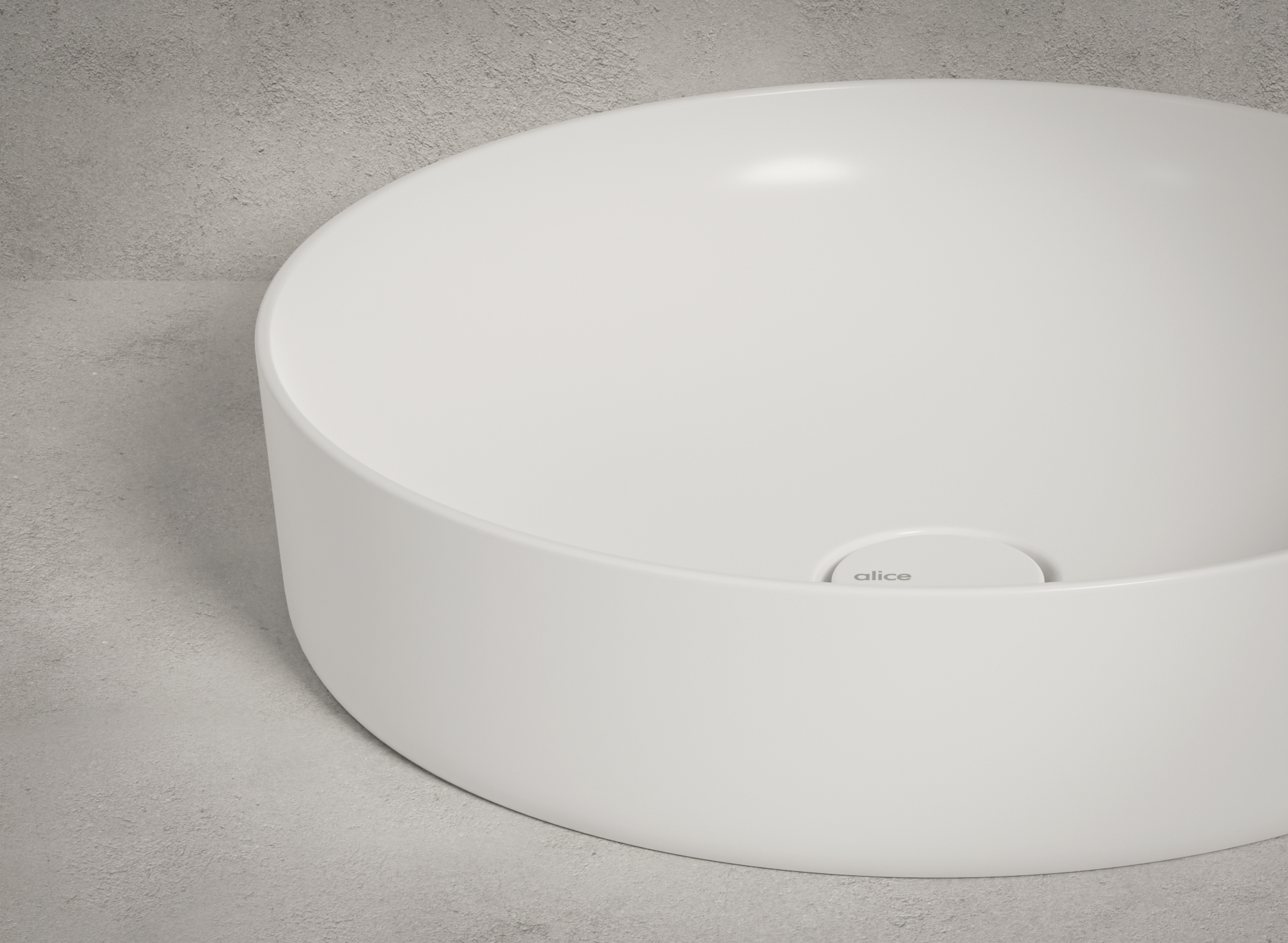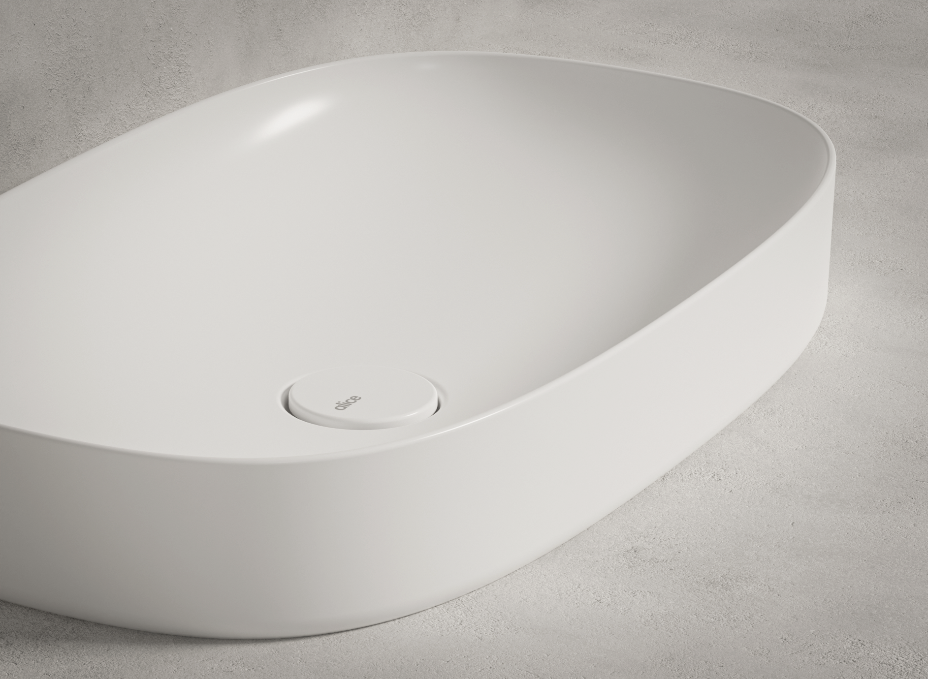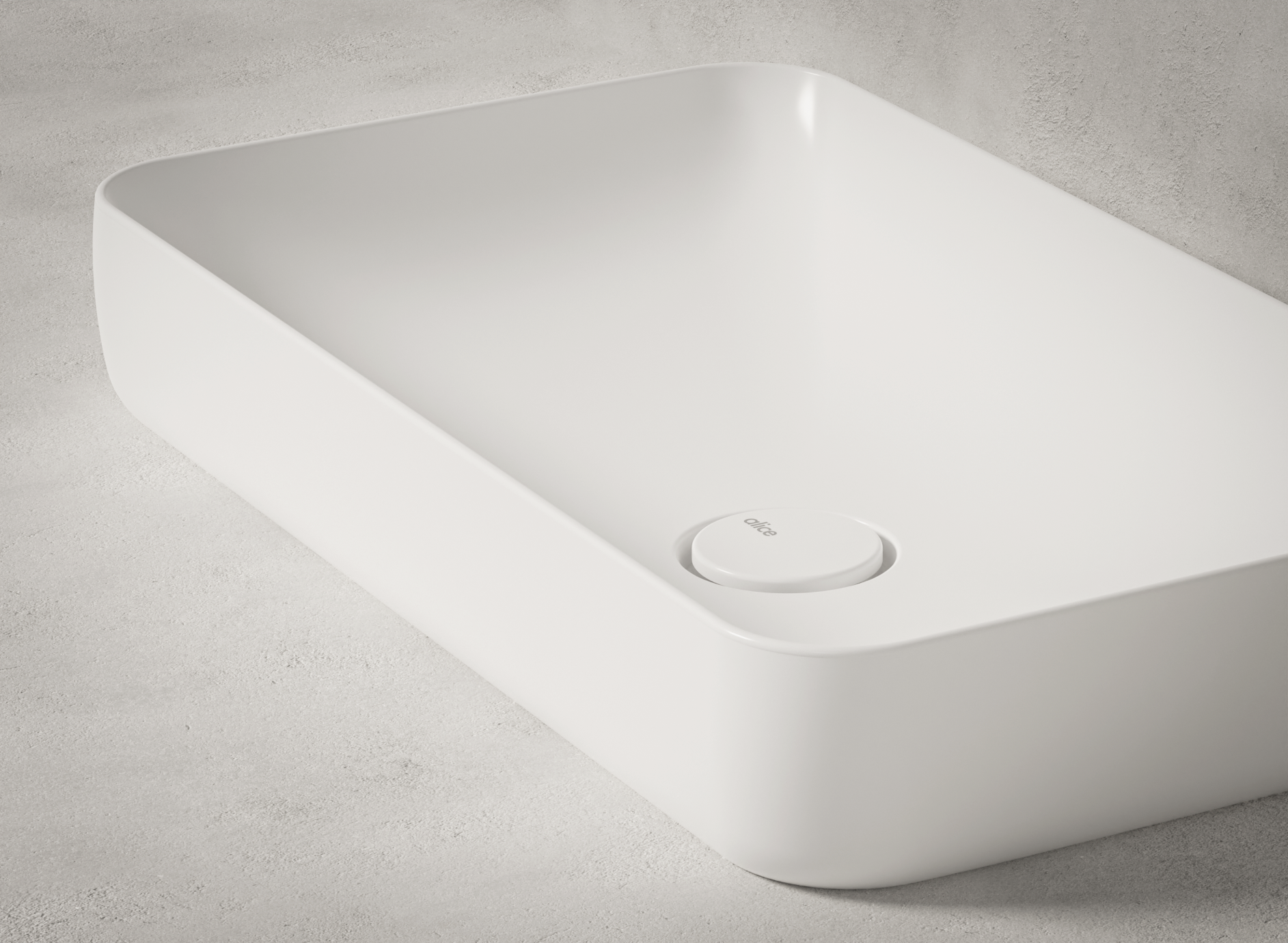 La prima serie presenta tre lavabi da appoggio, ognuno con un bordo rialzato di 3 mm che corre lungo il perimetro, evidenziando un piano interno di 10 cm di profondità, pensato sia per ospitare il rubinetto che come mensola portaoggetti. Le dimensioni sono: tondo Ø45 cm, H12 cm; rettangolare 60×45 cm, H12 cm; ovale 60×45 cm, H12 cm.