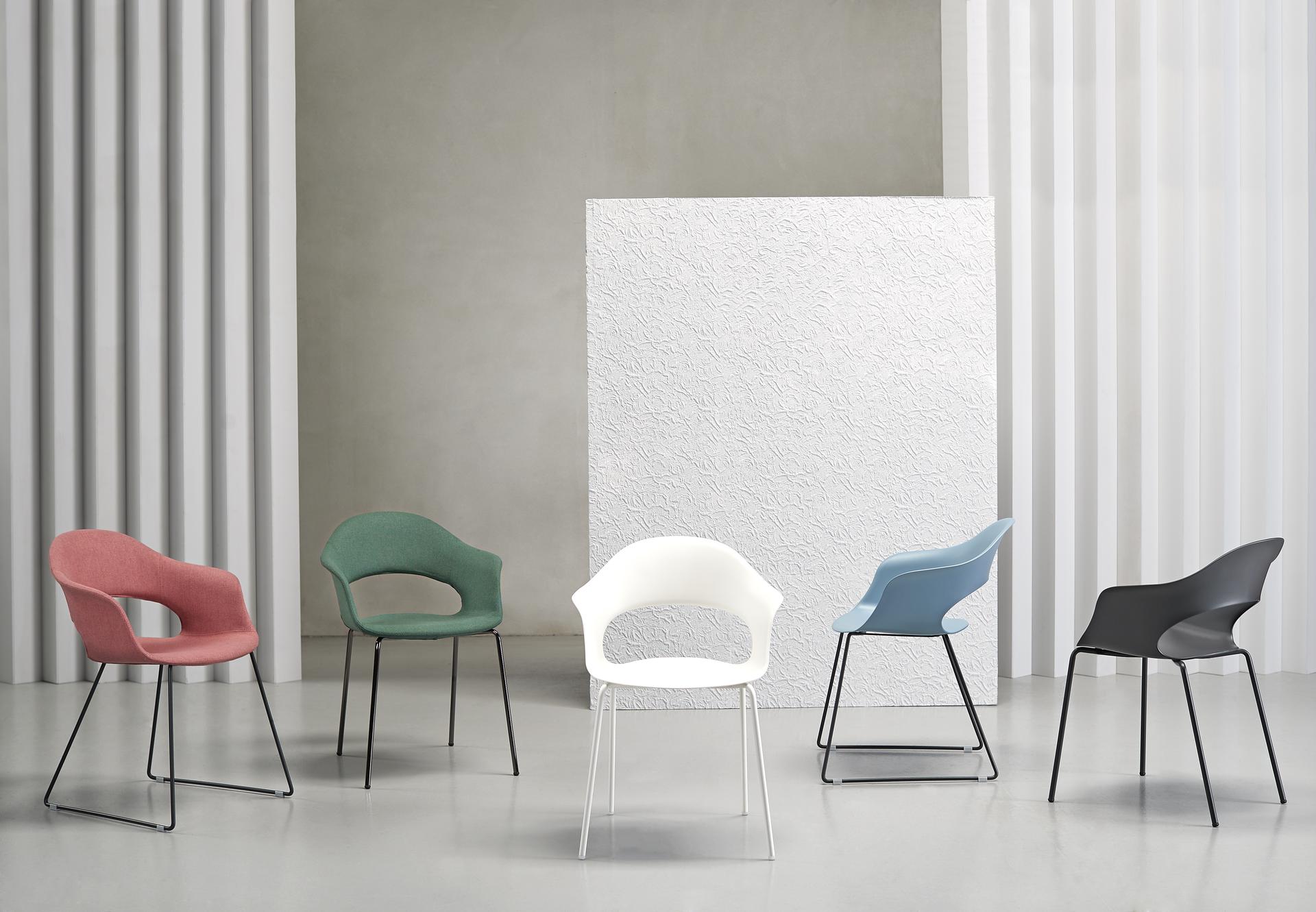 Il tavolo Squid Of si completa con la seduta Lady B Pop: nata dalla collaborazione con Studio Zetass è stata studiata per essere un progetto corretto per il contract.