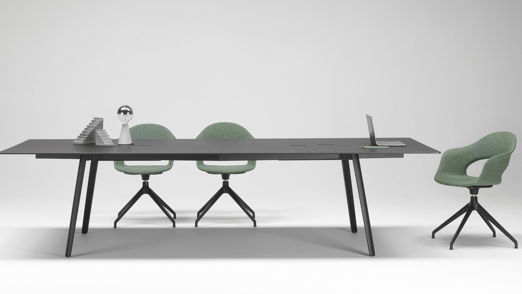 Arredare in modo funzionale, ma con stile: ecco perché oltre al tavolo Squid of, studiato da RadiceOrlandini DesignStudio per contesti operativi ufficio, trovano spazio le sedute Dress_Code di gumdesign e Lisa Swing di Marcello Ziliani adatte a momenti di distensione.