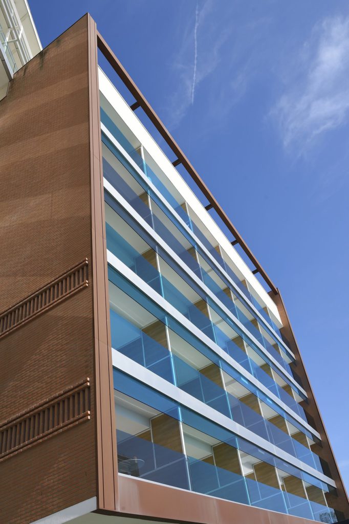 Tecnologico, controllato nella sobrietà delle proporzioni e dei materiali impiegati, l’involucro dell’Almar non è altro che la prospettiva più manifesta di un dispositivo ricettivo improntato a un inedito e sofisticato «international style», dove il mattone diventa elemento connotativo di contemporaneità e solidità delle radici.