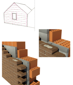 Il secondo sistema di fissaggio, ovvero di ritenuta, collega le due pareti (quella portante interna e quella di rivestimento in mattoni faccia a vista) della muratura multistrato, in modo da creare un insieme più stabile e resistente, soprattutto all’azione del vento. Questo tipo di fissaggio si realizza attraverso l’applicazione di elementi di tenuta puntiformi (graffaggi) in acciaio inox di lunghezza e diametro idonei.
