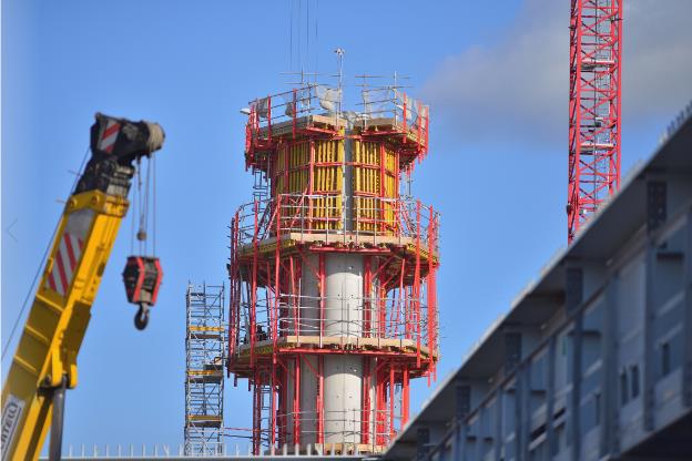Alla cassaforma Vario Gt24 è stato abbinato il sistema di ripresa Peri Rcs con guide che hanno permesso il sollevamento dell’unità di ripresa in massima sicurezza, nonostante le sollecitazioni dovute al vento.