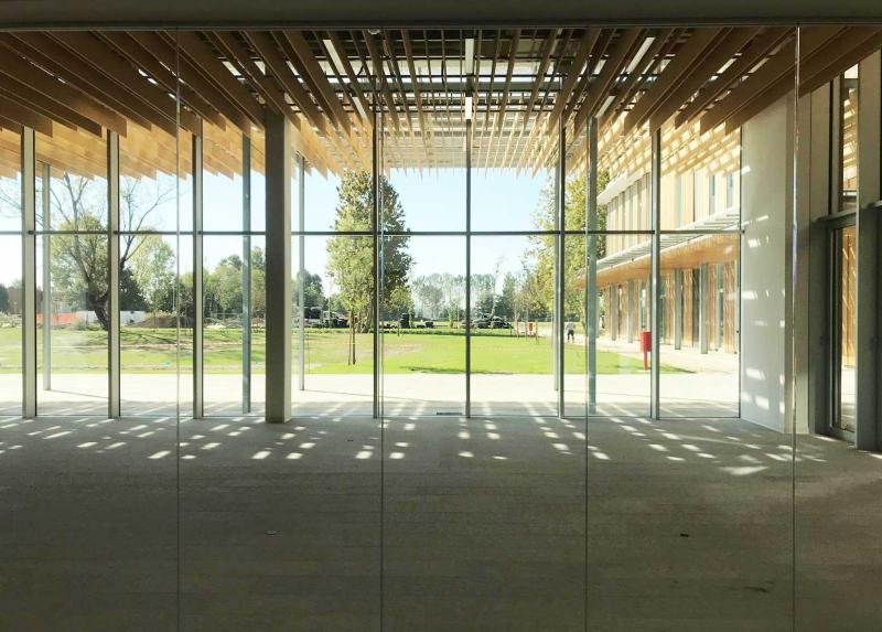 L’edificio è stato progettato “aperto”, rivolto alla natura, in modo da diventare parte intrinseca del contesto circostante. Un legame con l’ambiente naturale che facilita gli studenti nei processi di apprendimento.