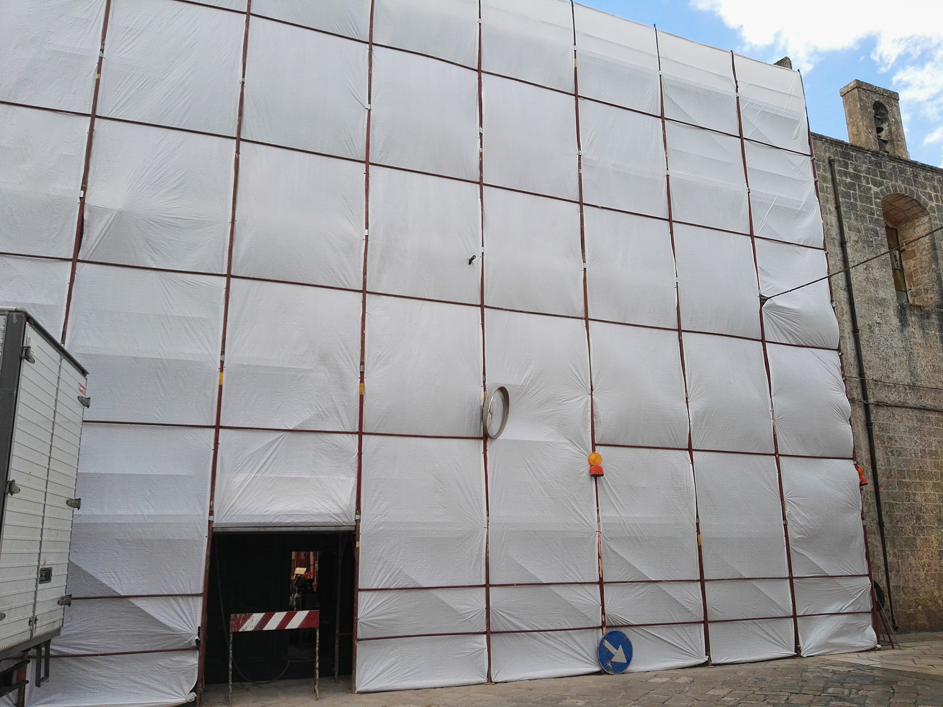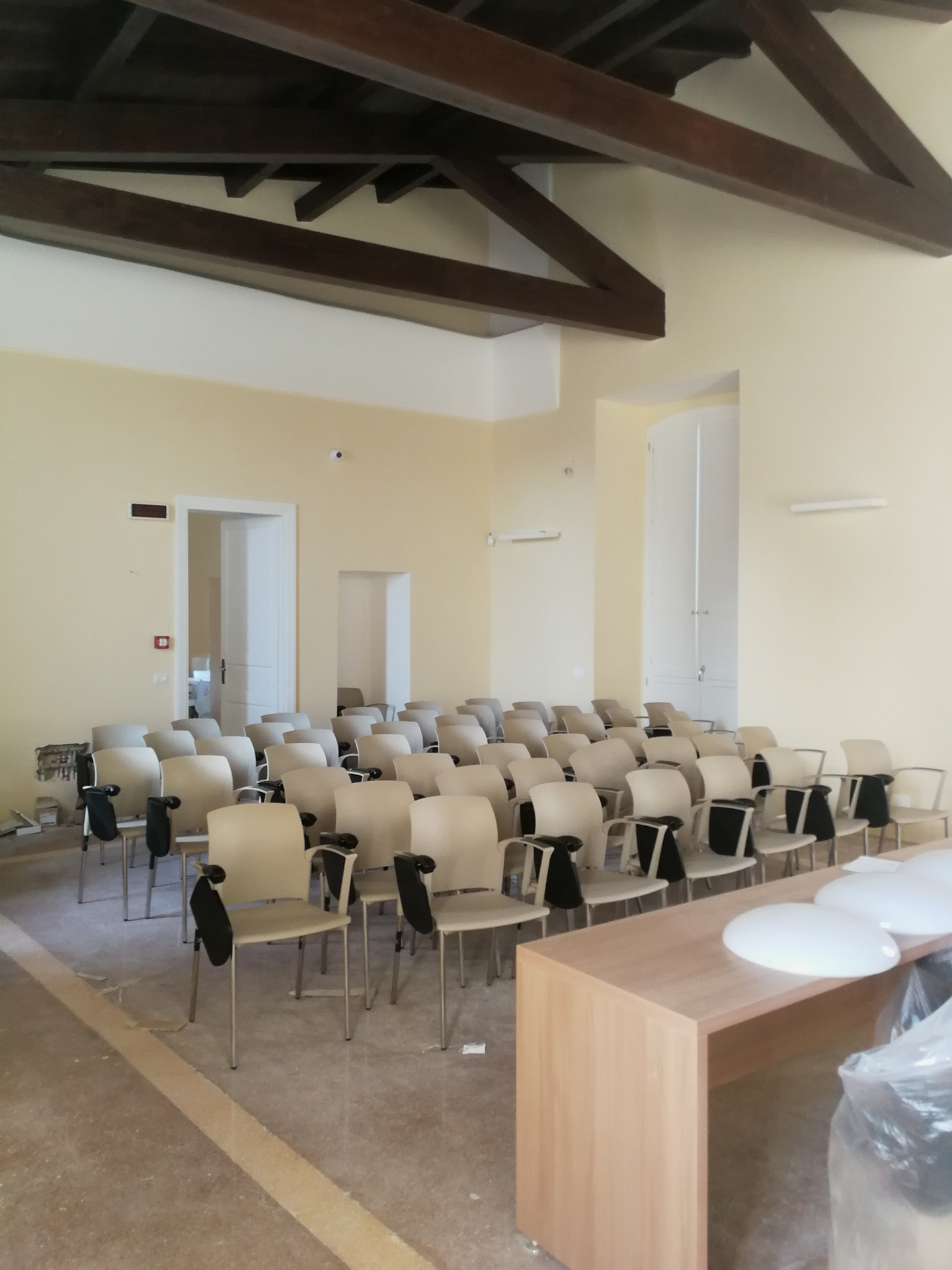 L’intervento si è tradotto nell’adeguamento tecnologico e relativa realizzazione di opere (tramezzature, pavimentazioni, controsoffittature…) che introducono nuovi elementi nella compagine interna ed esterna dell’opera. In questo caso, come per ogni altra tipologia d’intervento, vale il principio della diversa durabilità dei prodotti moderni rispetto a quelli del passato premoderno e quindi della necessità di eseguire interventi di dotazione tecnologica senza apportare distruzioni della materia antica.