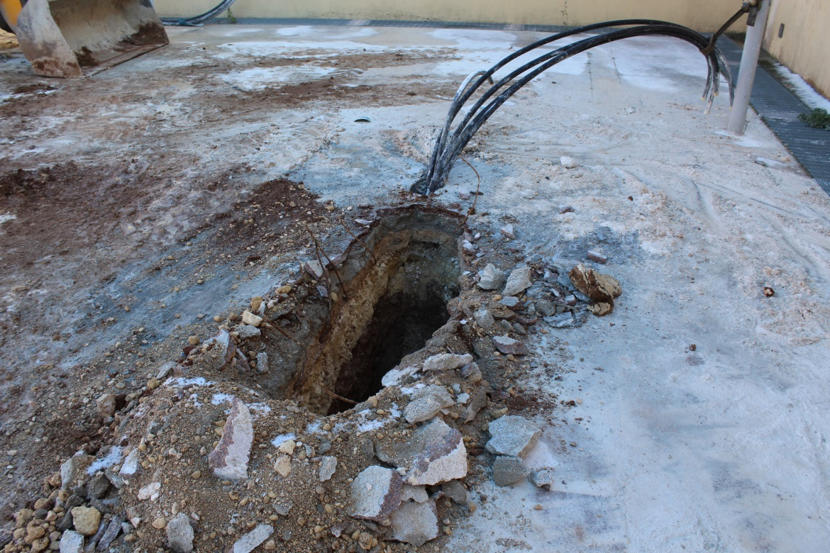 Per la realizzazione dell’impianto geotermico nella zona esterna e nel cortile la Soprintendenza ha richiesto dei saggi archeologici, visto che nelle vicinanze sono stati effettuati numerosi rinvenimenti archeologici: 72 tombe a fossa, in gran parte distrutte, 37 imboccature di silos e due frantoi ipogei. I 10 saggi realizzati non hanno restituito evidenze archeologiche e, per ottimizzare i costi, gli stessi sono stati poi riutilizzati adattando sia i tracciati degli impianti idrico-fognante-gas-antincendio-climatizzazione che l’impianto geotermico.