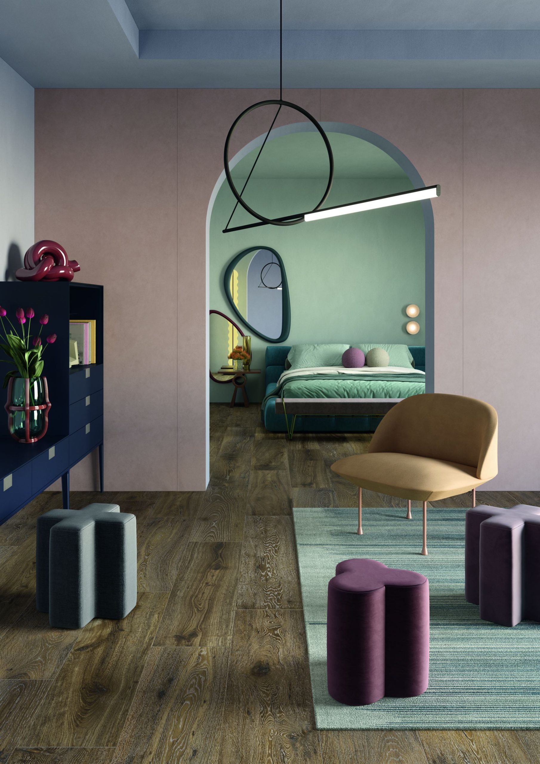 Bio Recover. Un attento studio per interpretare creativamente tavole recuperate da pavimenti e rivestimenti di interni e per dare origine a lastre ceramiche contemporanee e dal sapore vintage. L’usura causata dallo scorrere del tempo e le tracce lasciate sul legno sono rievocate nei rilievi strutturali, nelle venature e nelle variazioni cromatiche delle superfici.