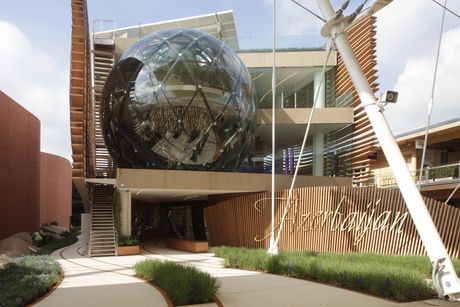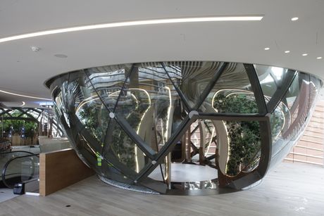 Per la realizzazione di questa struttura è stato scelto il vetro Planibel Linea Azzurra di Agc Glass Europe, che è stato utilizzato per le sfere, le parti piane della facciata e i parapetti interni. Prodotto esclusivamente in Italia, nello stabilimento Agc di Cuneo, questo vetro speciale chiaro è caratterizzato da un aspetto leggermente azzurrato ed è particolarmente adatto per grandi superfici vetrate. La notevole facilità con cui può essere tagliato, molato, temperato, curvato e stratificato, inoltre, lo rende una soluzione ideale per essere utilizzata con sicurezza e versatilità anche in progetti complessi.