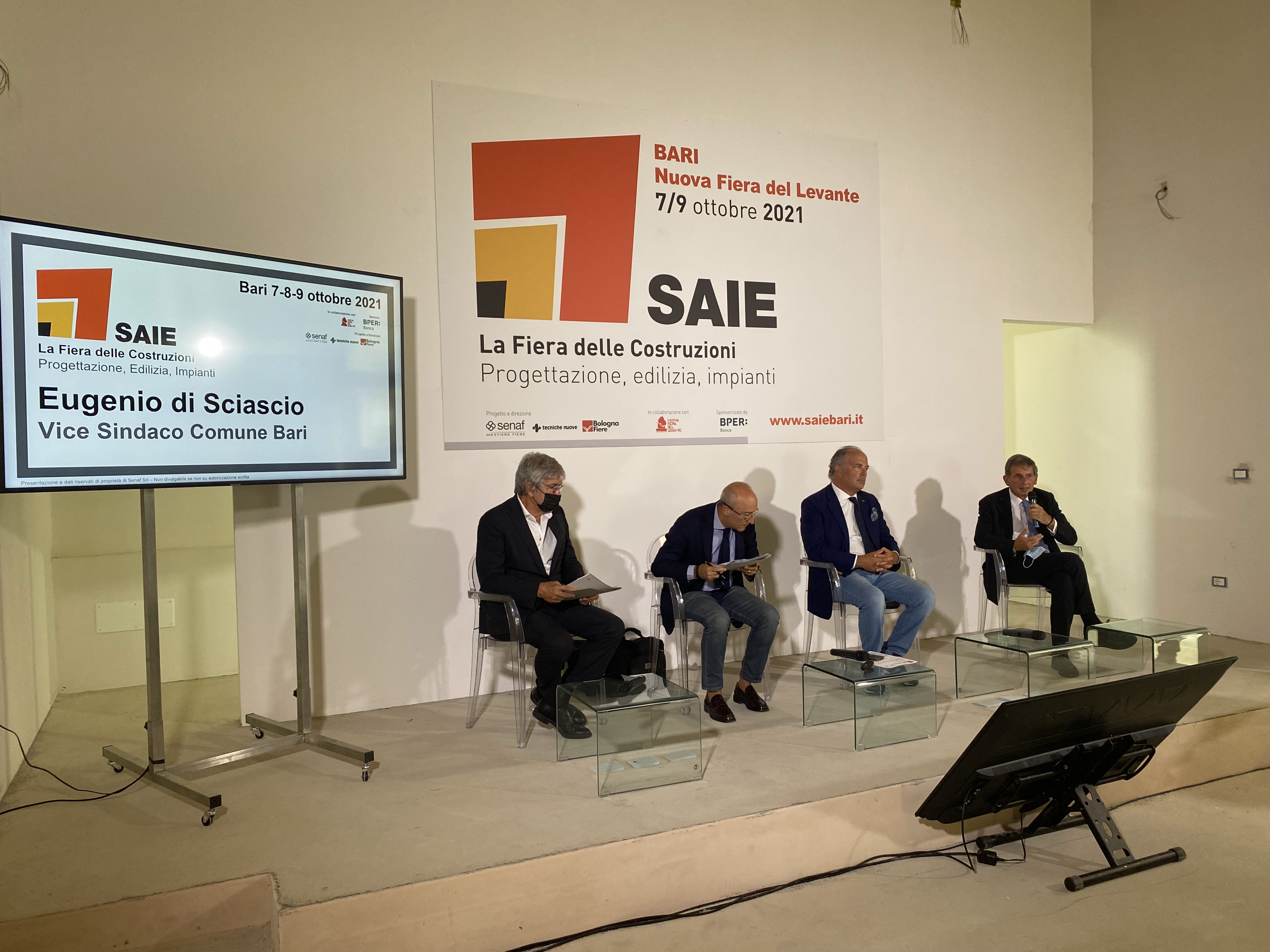 La conferenza stampa di presentazione della nuova edizione di Saie a cui hanno partecipato Eugenio Di Sciascio – Vicesindaco Comune di Bari, Ivo Nardella – Presidente Gruppo Tecniche Nuove – Senaf, Alessandro Ambrosi – Presidente Nuova Fiera del Levante, Nicola Bonerba – Presidente Ance Puglia, Braccio Oddi Baglioni – Vicepresidente Federcostruzioni ed Emilio Bianchi – Direttore Generale Senaf/Saie, è stata un’occasione, oltre che per capire lo stato dell’arte della filiera con gli ultimi dati, anche per conoscere i temi che animeranno gli oltre 100 appuntamenti formativi di Saie Bari 2021. Il Superbonus 110% e gli altri incentivi saranno dunque protagonisti della fiera, insieme al Pnrr e ai trend del settore, come l’innovazione tecnologica e la sostenibilità, in una manifestazione che parte dai tre pilastri stessi del costruire – progettazione, edilizia, impianti. L’edizione pugliese di Saie, con il suo format innovativo che unisce formazione ed esposizione, può contare già su 250 aziende, oltre che sulla partecipazione di oltre 40 associazioni che sostengono l’evento.