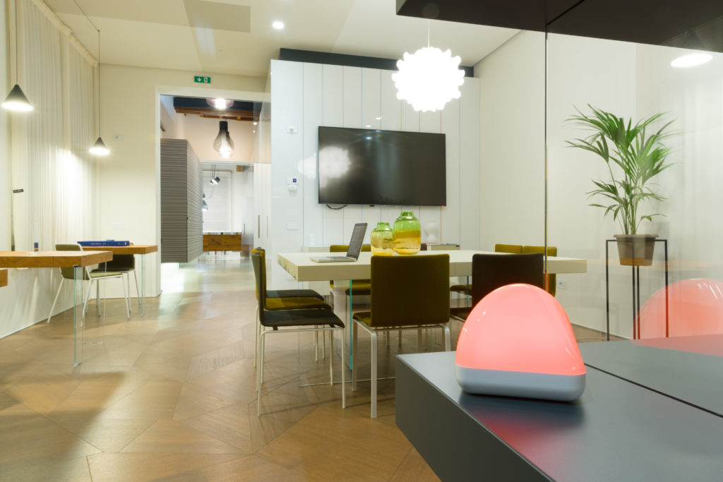 Un device dalla forma piramidale dai vertici arrotondati che facilitano l’interazione con l’utente che può così esplorarne le funzioni in maniera intuitiva grazie a semplici movimenti della mano. Diversi i segnali luminosi emessi che guidano l’utente nella gestione dell’energia: se la luce è verde significa che i consumi risultano nella soglia media, calcolata in base alla stagionalità e alle abitudini di consumo; se invece i consumi aumentano, la luce cambia come un semaforo, fino a diventare rossa lampeggiante nel momento in cui la potenza sta per raggiungere la soglia massima e si presenta il rischio di un blackout.