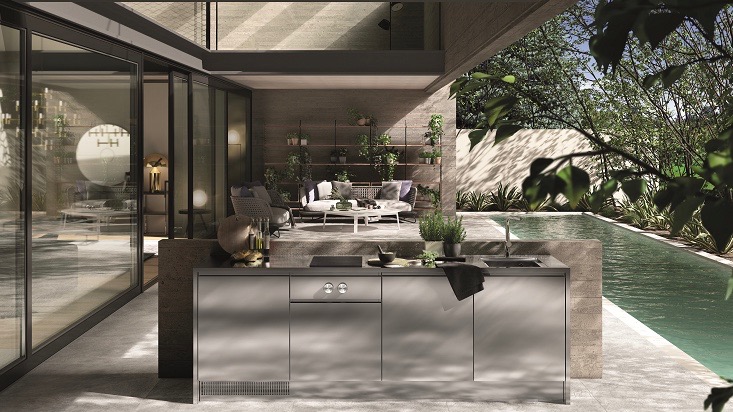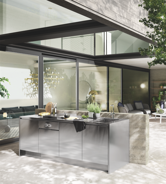 Il materiale è l’acciaio AISI 316: si tratta di un materiale perfetto per gli ambienti esterni. Grazie all’aggiunta del molibdeno risulta particolarmente adatto per una cucina installata in un luogo ricco di cloro e salsedine.