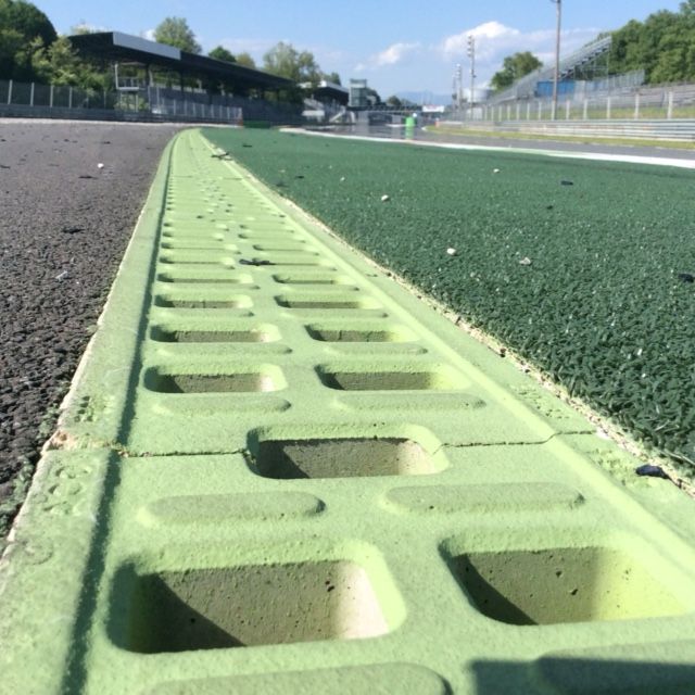 La particolare configurazione di Aco Drain Monoblock, in cui canale e griglia si fondono in un tutt’uno, risponde proprio a questa esigenza, offrendo una soluzione ideale che non crea problemi alle vetture dovuti a un cattivo fissaggio delle griglie e allo stesso tempo è perfettamente funzionale per il drenaggio, captando le acque meteoriche che, vista l’inclinazione delle vie di fuga esterne verso la pista, confluirebbero altrimenti lungo la traiettoria di percorrenza delle monoposto, aumentando notevolmente la pericolosità del tracciato.