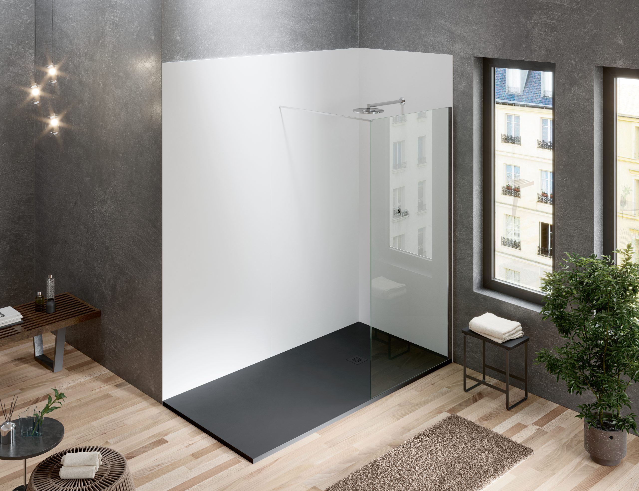 Il piatto doccia Smart Quiz e alla vasca da bagno Opal Quiz sono solo due esempi distintivi di come il nero valorizzi non solo il design, ma renda ancora più realistiche le finiture Acquabella.