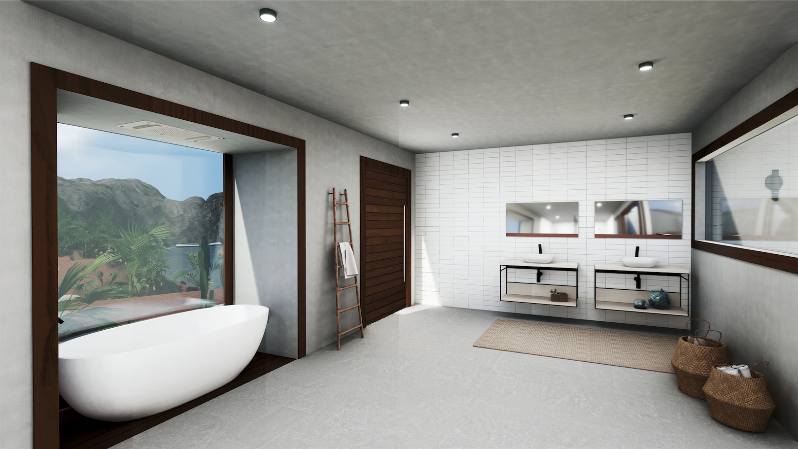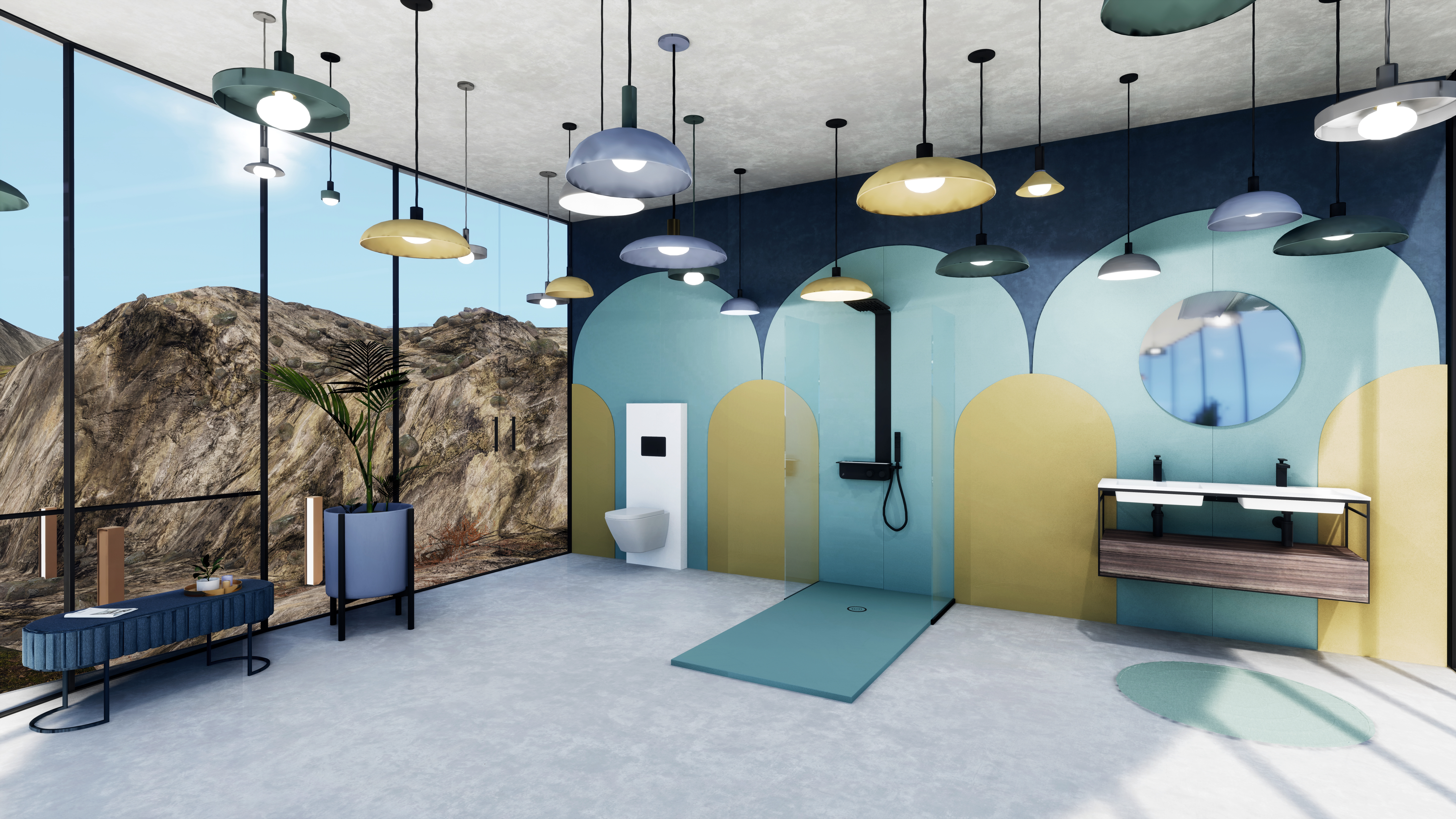 La visita ha inizio dalla cupola centrale in cui un grande schermo, posizionato al centro dell’ambiente, consente di accedere alle tre sezioni principali dello showroom: la linea Acquabella realizzata in Akron, la collezione Acquawhite in Dolotek, e la divisione dedicata agli aspetti più tecnici, che include la gamma di texture e colori, i dettagli di installazione dei prodotti e molto altro ancora. L’eccezionale qualità video della piattaforma consente di osservare nel dettaglio la struttura delle otto texture disponibili – Quiz, Arabba, Ethnic, Slate, Ardesia, Beton, Nude e la microfinitura Zero – per un’esperienza ultra realistica.