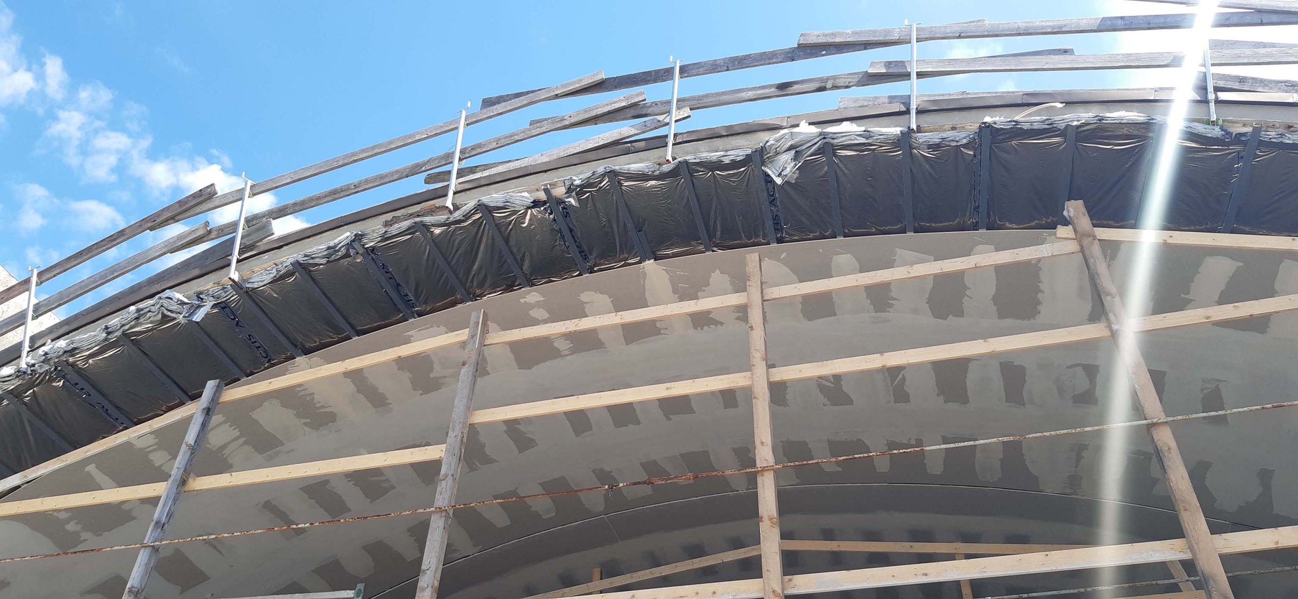 In questo progetto è stata la copertura in particolare a richiedere una maggiore attenzione vista la sua struttura curvilinea. Grazie alla flessibilità di posa di Triso Hybrid’ di Actis l’installazione è stata operativamente semplice e non ha richiesto lavorazioni particolari. Triso Hybrid’, infatti, è un materiale leggero facile da movimentare in cantiere e in più richiede un minor numero di fasi di installazione.