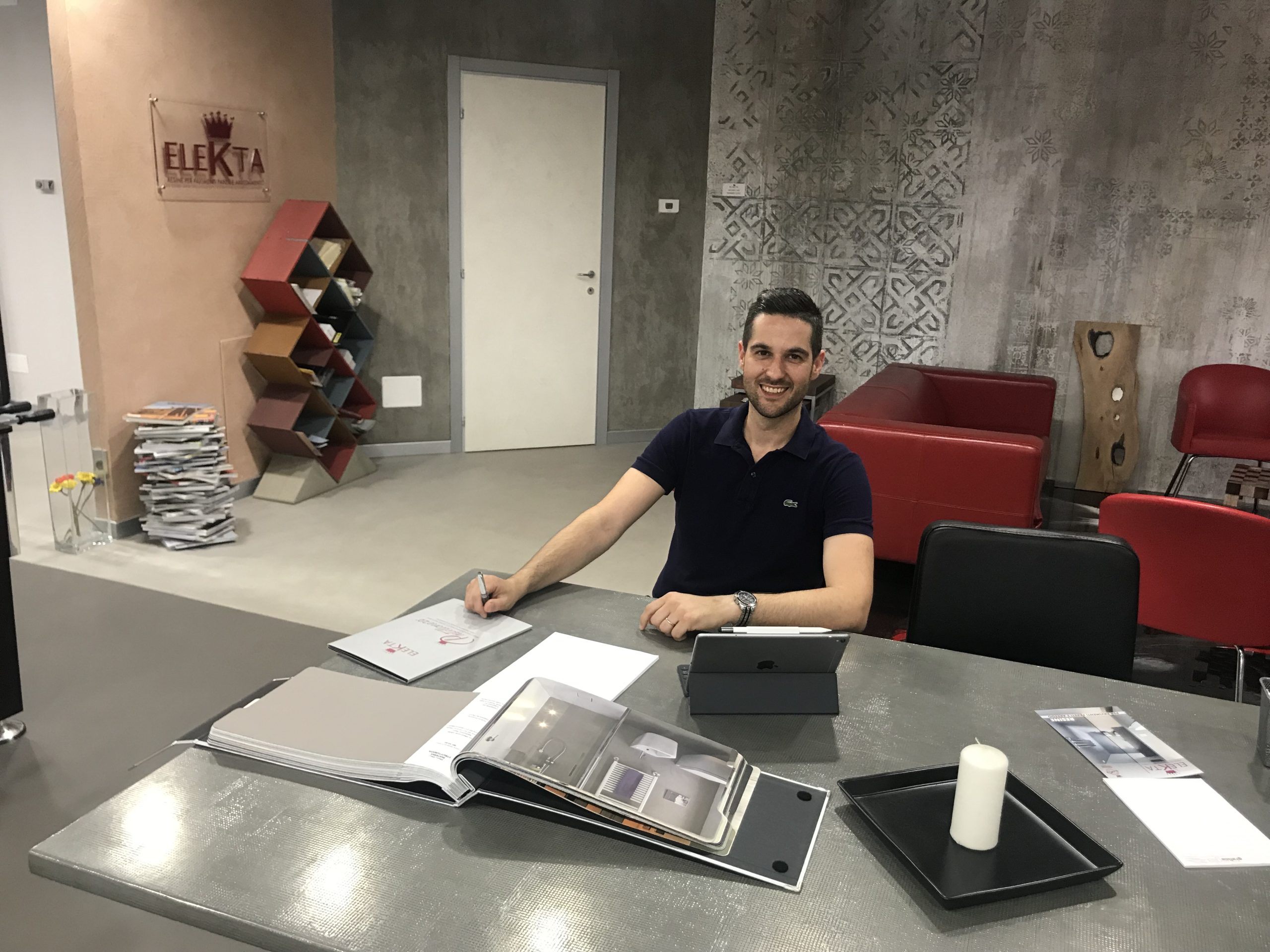 La superficie del locale è stata rivestita con Natural Cemento G40 prodotto da Elekta. Un prodotto utilizzato per ottenere un effetto cemento naturale su pavimenti e pareti in ambito residenziale, commerciale e contract, che Claudio Spreafico, product manager dell’azienda descrive in questo modo: «Natural Cemento G40 offre elevate prestazioni di resistenza a pavimento e un’ottima impermeabilità anche in ambienti a diretto contatto con l’acqua. È una miscela di minerali in grado di creare il reale effetto cemento stonalizzato, per creare quello stile industrial che molte aziende cercano di imitare. Noi lo realizziamo con il vero cemento.». Non un’imitazione, dunque, ma l’effetto naturale del cemento è uno dei plus di questo prodotto che è anche semplice da posare: «Con soli 2 millimetri di spessore è possibile applicarlo direttamente sulla superficie esistente, anche su piastrella, senza rimuovere il sottofondo e, quindi, senza polvere o smaltimenti di materiali da cantiere. In soli quattro giorni è possibile rinnovare un pavimento di un negozio, i bagni dell’hotel oppure le pareti di casa» Claudio Spreafico, Product manager di Elekta, Gruppo Gani
