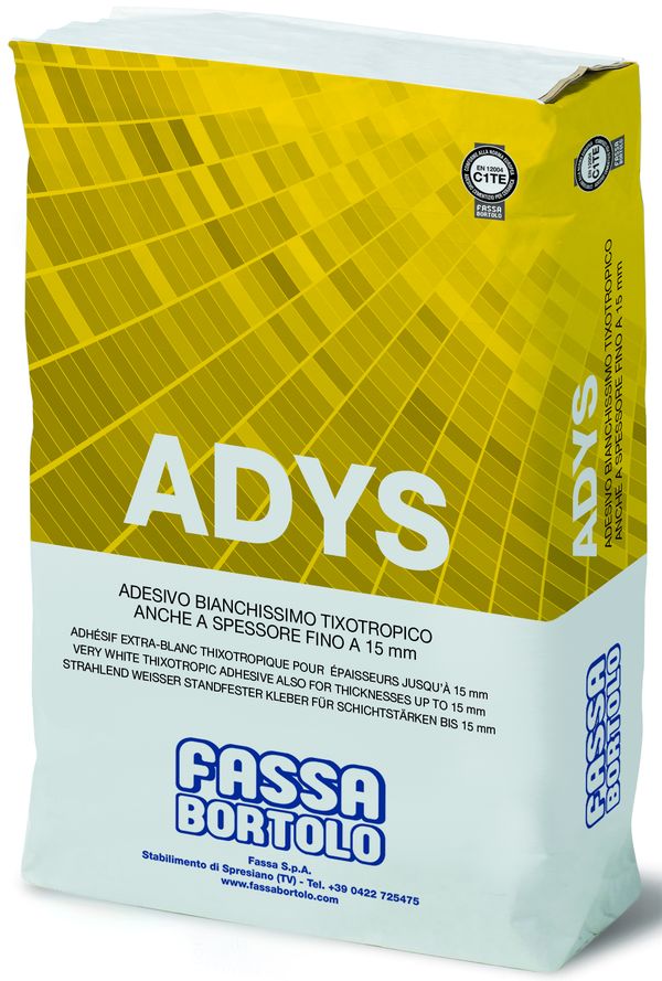 Adys è l’adesivo extra-bianco e grigio di Fassa Bortolo >> adatto per pavimenti e rivestimenti in interni ed esterni studiato per la realizzazione di superfici antiscivolo a tempo aperto allungato, per spessori fino a 15 mm.