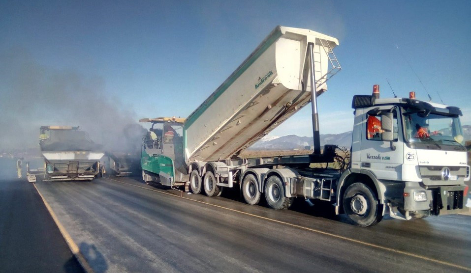 La fornitura dei materiali si è svolta impiegando mezzi di trasporto adeguatamente coibentati per ridurre al minimo l’abbattimento della temperatura della miscela.