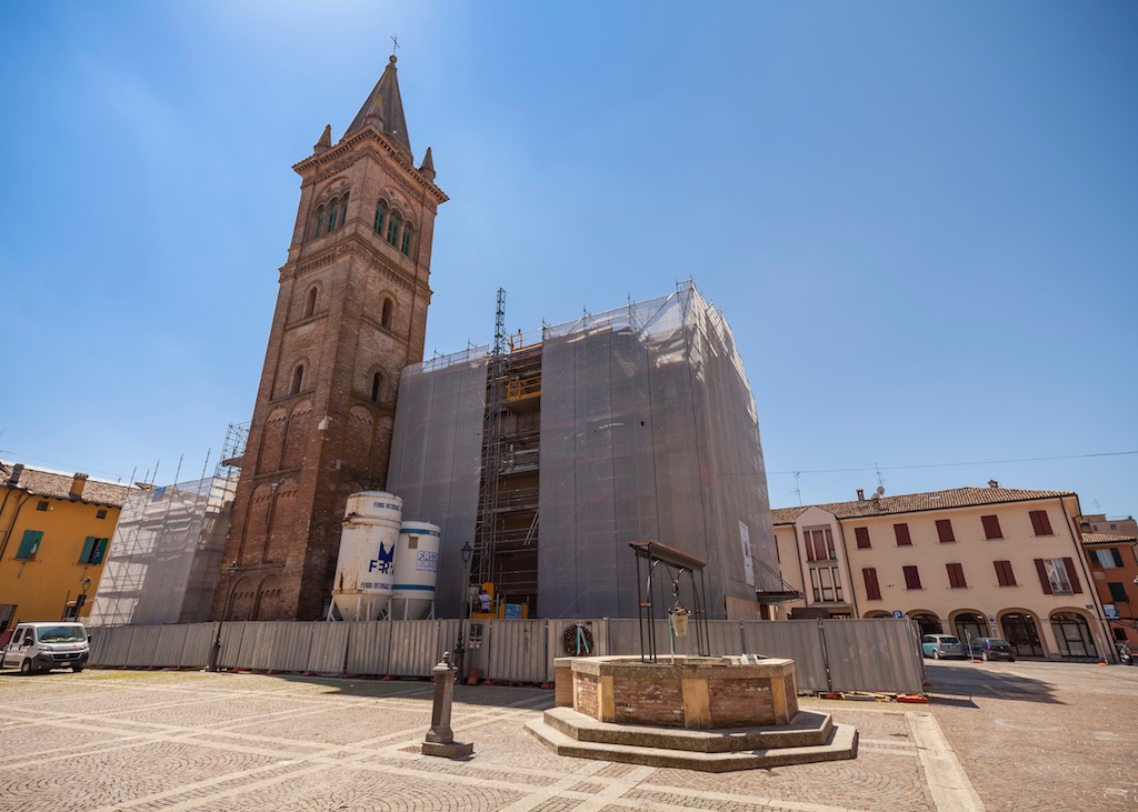 Sant’Agata Bolognese è un comune ricco di bellezze storico artistiche, di monumenti, con una storia che registra una delle sue tappe più significative intorno all’anno 1000, con la costruzione del castello che ora fa parte del centro storico, le due porte di accesso e il primo tratto della torre campanaria. Della chiesa di Sant’Andrea e Agata si hanno le prime notizie già alla metà del ‘500, ma la sua conformazione attuale risale al 1629. Durante il corso dei secoli sono stati numerosi i rimaneggiamenti che hanno interessato il fabbricato, ma anche gli interventi più recenti non hanno impedito all’edificio di presentare un degrado molto forte. Il terremoto del Maggio 2012 non ha che peggiorato la situazione: problemi strutturali dovuti ai cedimenti, distacco di intonaco determinato dalla consistente umidità di risalita, pessime condizioni della copertura ed infiltrazioni d’acqua frequenti in diversi punti. I lavori di restauro sono iniziati nel Settembre del 2017 ed hanno interessato sia le strutture verticali che la copertura.