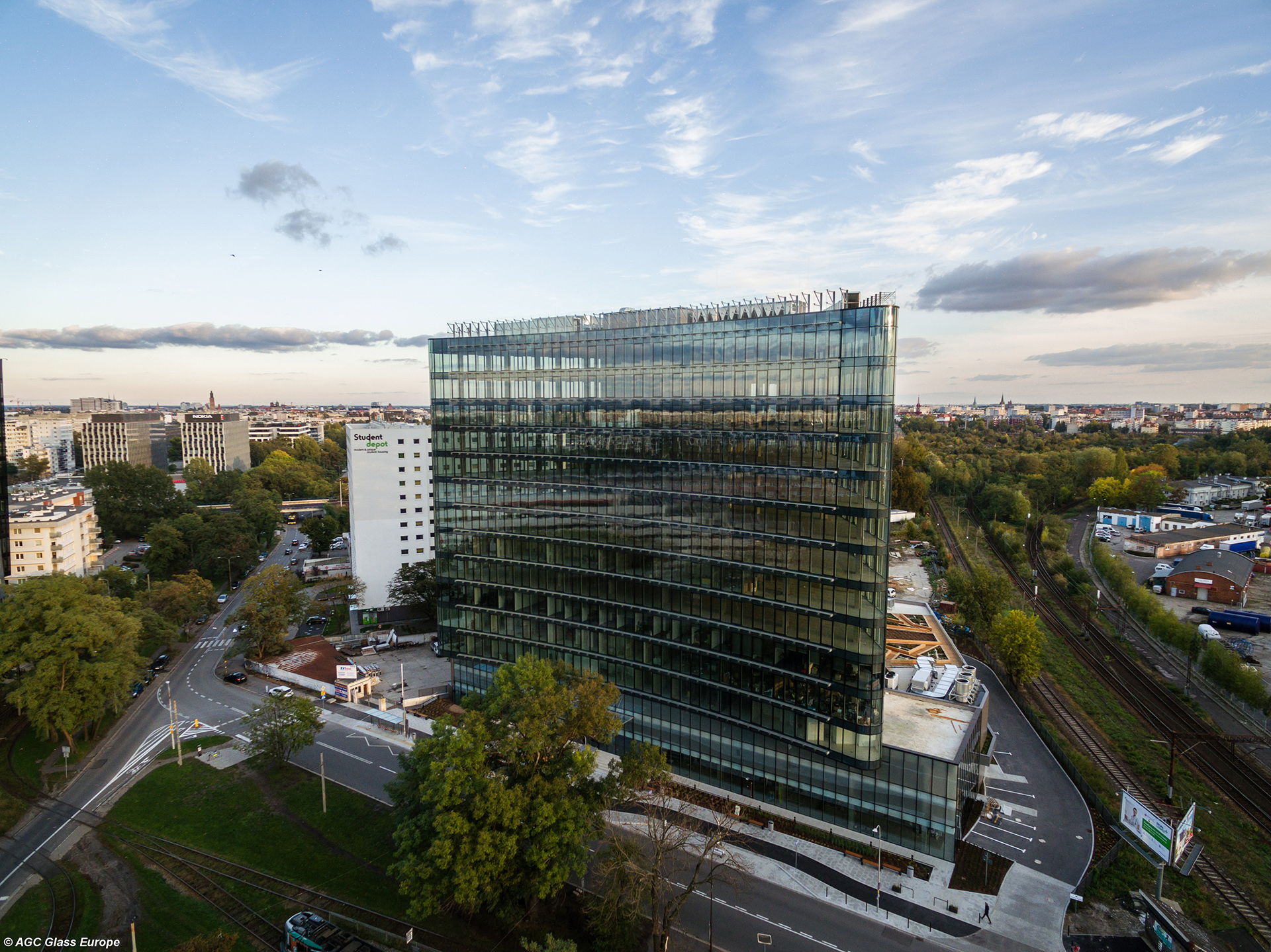 Per realizzare le facciate vetrate sui tre lati dell’edificio – che ospita uffici, spazi commerciali e un asilo – è stato scelto Stopray Vision-60t di Agc Glass Europe: il vetro selettivo a elevate performance in termini di trasparenza e controllo solare, che massimizza la trasmissione luminosa e riduce il calore solare.