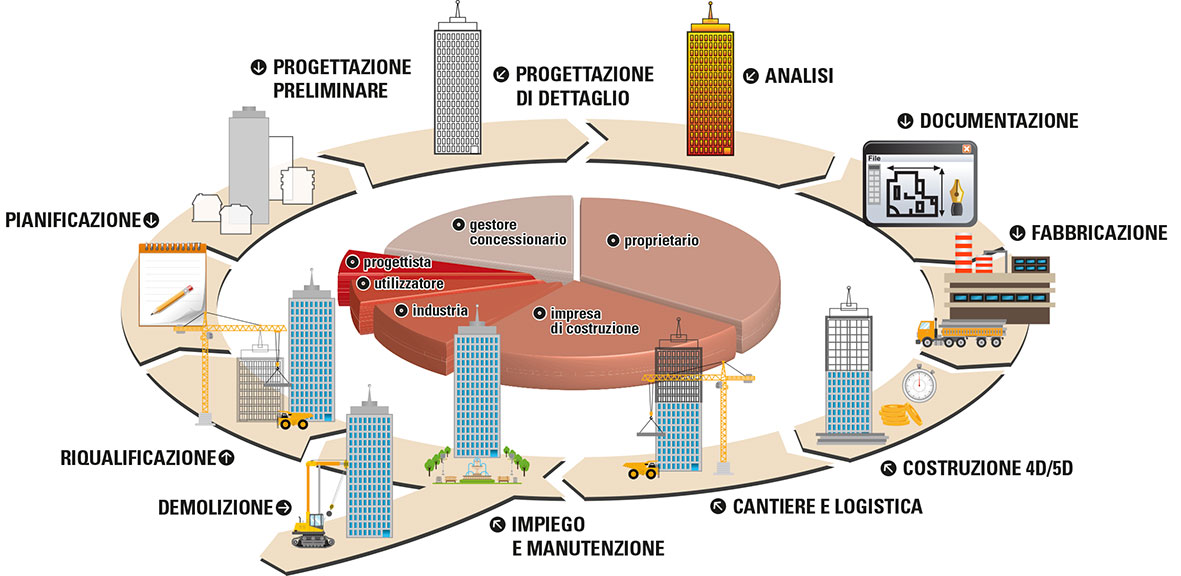 Contrariamente a quanto comunemente si crede, il BIM è uno strumento che non è rivolto ai soli progettisti, ma è di grande utilità per tutti gli operatori della filiera dell’edilizia, ciascuno ovviamente per la sua parte di competenza. Il BIM è infatti sinonimo di interoperabilità, oltre che di ottimizzazione di processo, di conseguenza è fondamentale, laddove possibile, eliminare le asimmetrie di utilizzo, facendo in modo che tanto dal lato della committenza, quanto da quello delle imprese, vi sia un linguaggio comune con il quale dialogare e si possano così raggiungere i vantaggi generali già citati.