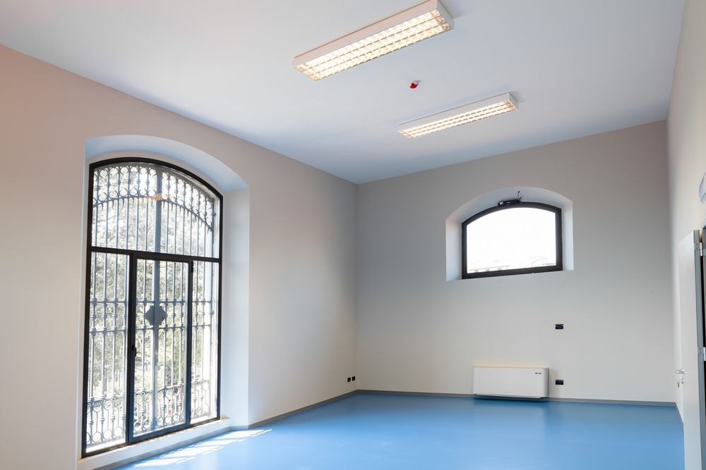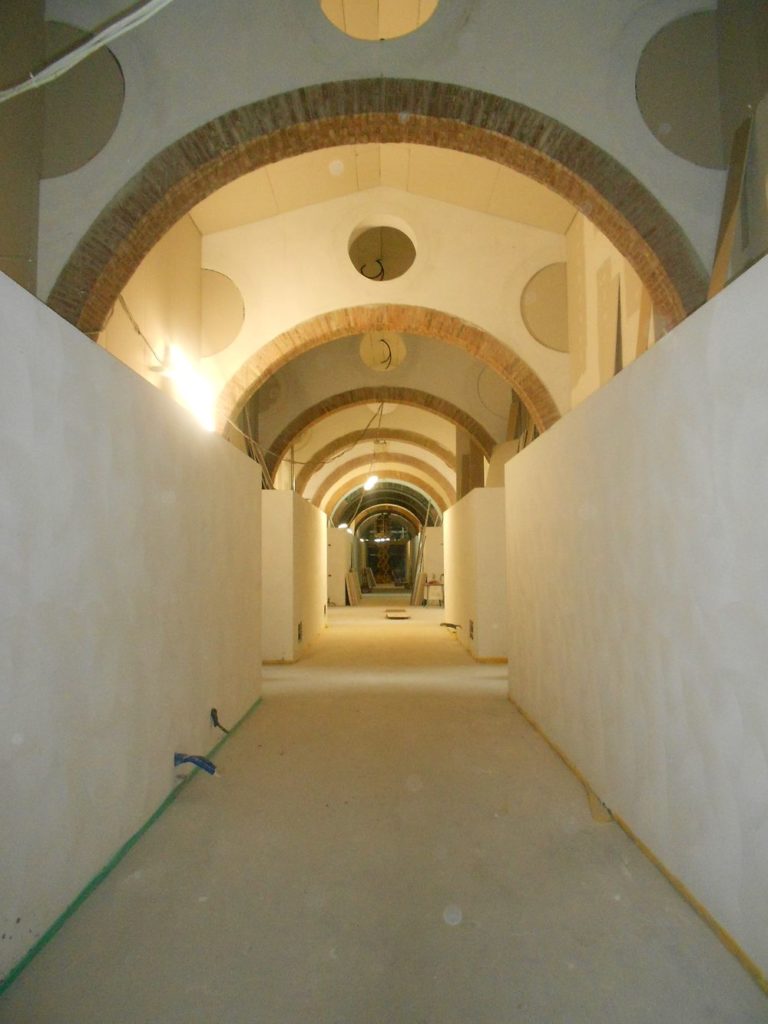 Durante i lavori di scavo per la realizzazione del massetto e del vespaio, è stata riscontrata la presenza del vecchio pavimento in pietra. In accordo con la Soprintendenza per i Beni Architettonici e al fine di salvaguardare la storicità del fabbricato, è stato deciso di lasciare intatta, al di sotto della nuova pavimentazione, quella antica in pietra, eliminando così l’esecuzione del suddetto vespaio aerato (inizialmente previsto dal progetto esecutivo).