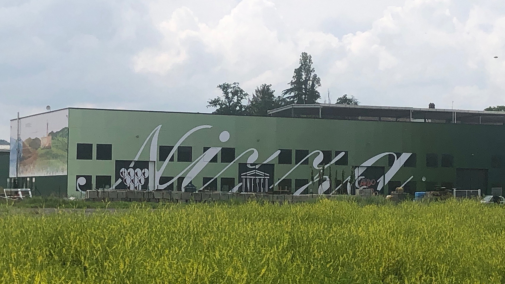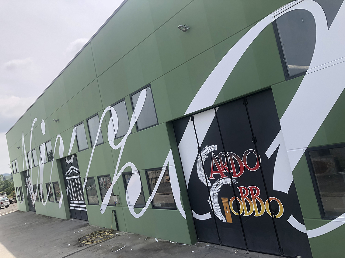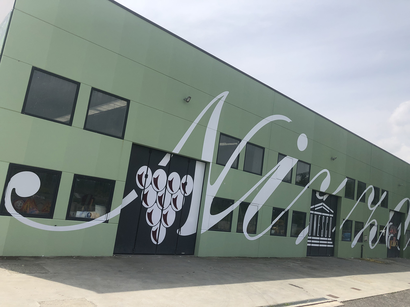 «Reinventando il modo di pitturare, creando 45 sfumature impercettibili, trasportate su quasi 50 metri di lunghezza, offrendo una visione di insieme che ricalca le varie tonalità del verde delle colline circostanti, che mutano nei 365 giorni dell’anno. Usando, poi, una grafica di circa 140 mq. per dare il “benvenuto” ai turisti che entrando nel territorio, abbiano già la percezione di entrare in un “mondo diverso”, ovvero del “Nizza”, dell’UNESCO e del “Cardo Gobbo”. È un’esplosione di innovazione, di idee che si trasformano in un ballo di emozioni dei sensi».