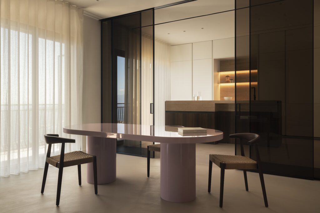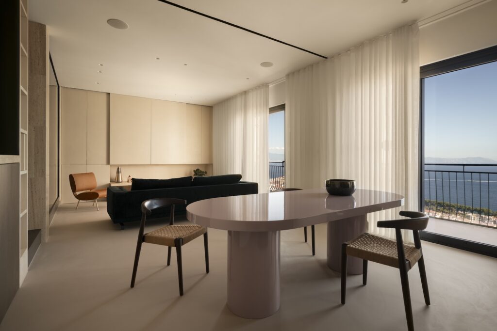 Anzi, l’ulteriore sfida affrontata in questo progetto è stata proprio quella di mantenere un registro “silenzioso ma eloquente”, un interno con una propria anima indipendente dal luogo, ma che allo stesso tempo potesse essere abitato dalla presenza della città e del mare senza creare dissonanze».