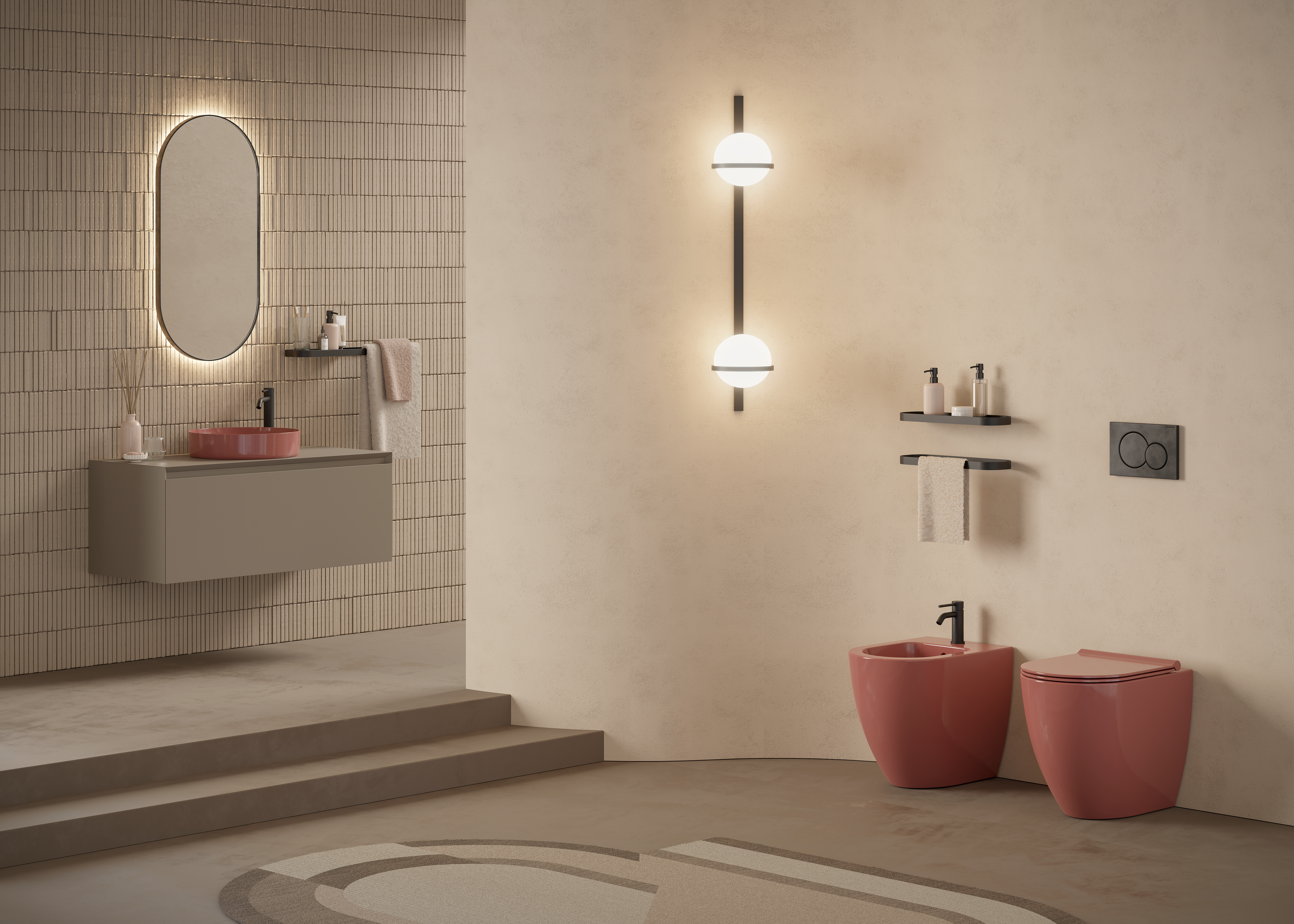 Un design essenziale dominato da linee sinuose che sfumano verso un insolito effetto sospeso alla base è il concept che ha guidato la realizzazione della collezione Form di Alice Ceramica.