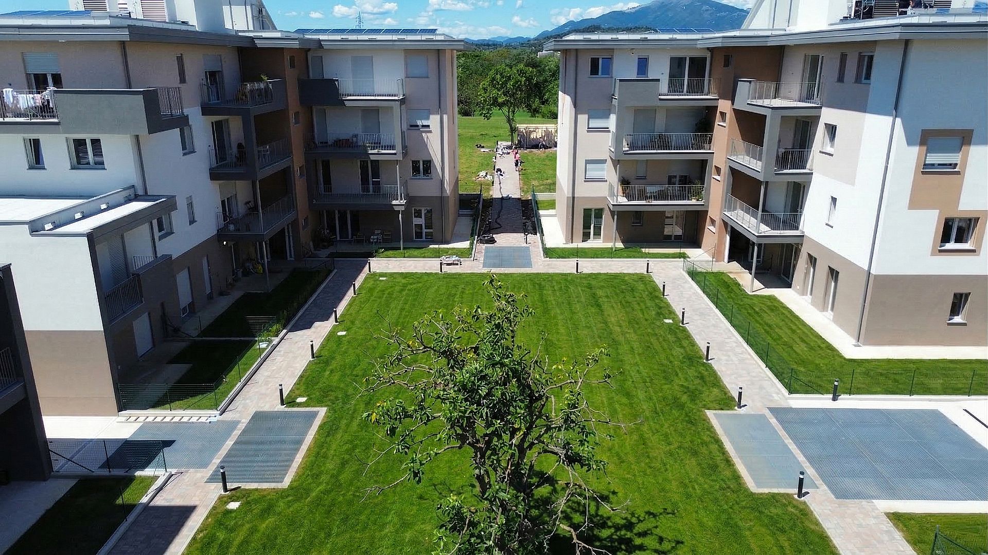 La particolare configurazione strutturale delle palazzine — con pareti portanti in Xlam — ha richiesto ad Alpac una progettazione specifica e una customizzazione dei monoblocchi per garantirne la corretta integrazione tecnica.