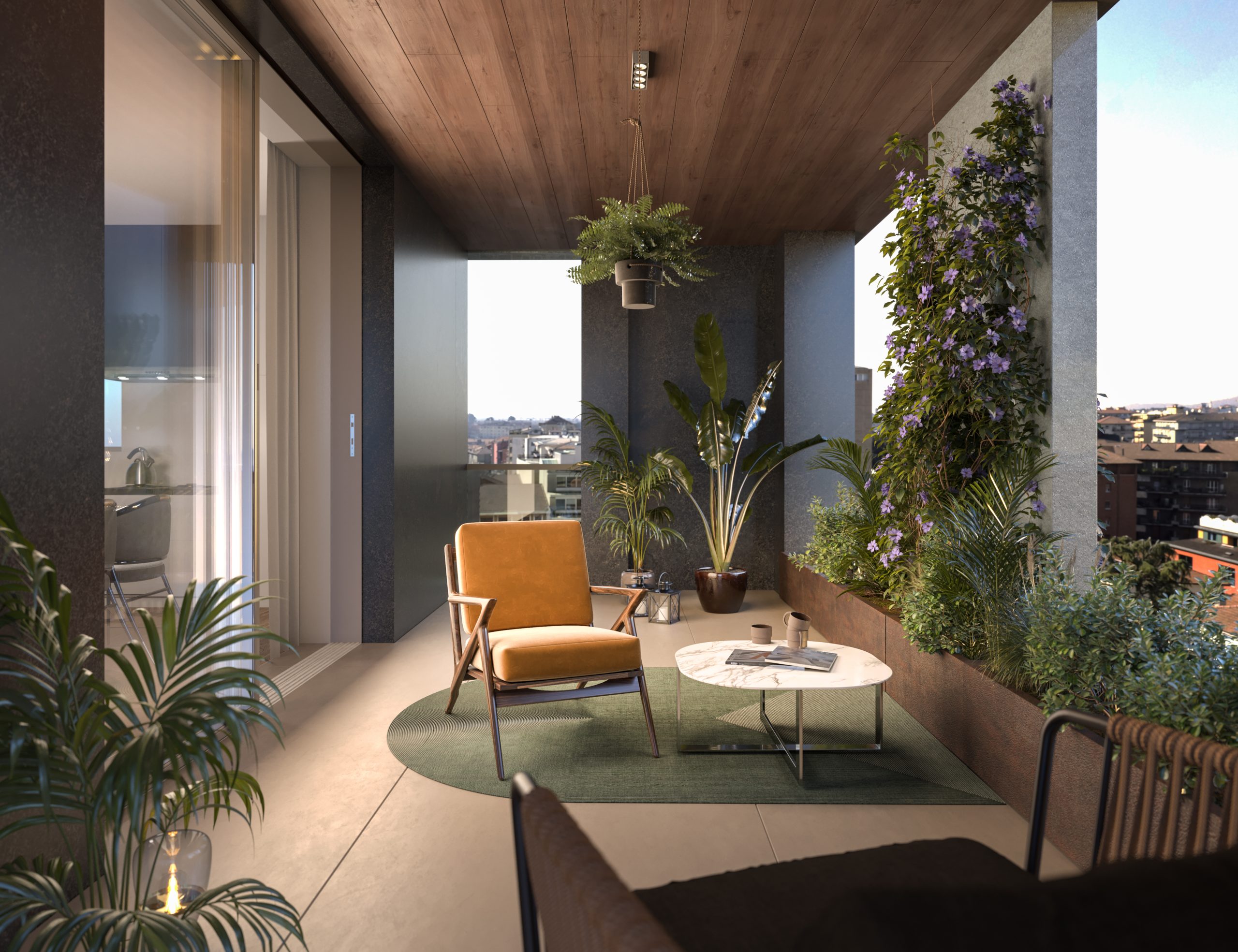 Le facciate presentano un disegno dinamico, con logge e ampie terrazze e grazie all’utilizzo di diversi materiali dai colori sobri e dalle textures caratterizzanti. Oltre al cantiere, che utilizzerà fonti di energia rinnovabile, tutti gli appartamenti saranno in classe energetica A3 e A4, grazie all’installazione di pannelli solari, pompe di calore e un sistema di raffrescamento.