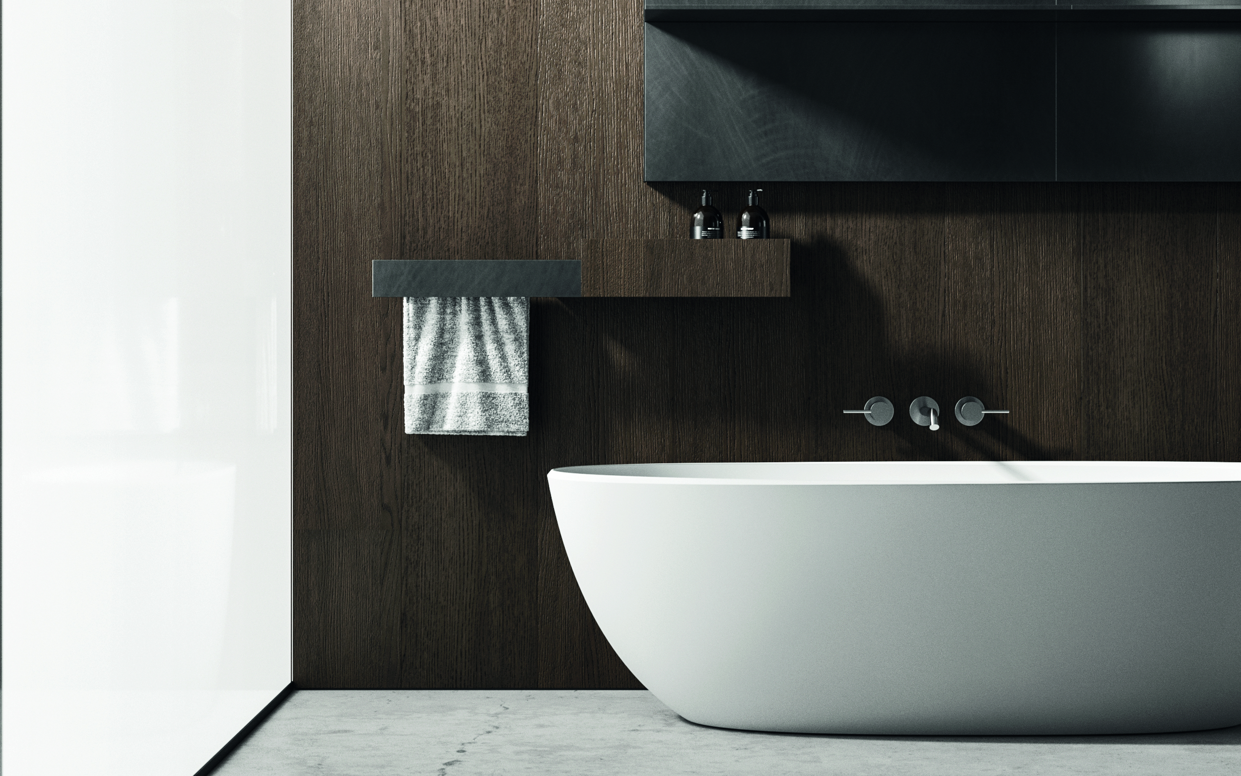 Per coloro che prediligono il minimalismo, c’è Lympha Monolite, un modulo indipendente dotato di lavabo dedicato, disponibile in un’unica dimensione e tutte le finiture della collezione, incluso l’Abete Tabacco, un legno caratterizzato da un aspetto vissuto, ottenuto dal recupero di vecchi casolari di montagna.