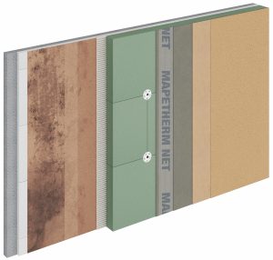 Mapetherm X2 System è il sistema Mapei che consente di raddoppiare il cappotto adottando vecchi sistemi esistenti come base per un isolamento termico più performante, e adatto per accedere agli incentivi fiscali dei bonus casa. La sua applicazione non prevede pertanto la rimozione dell’isolamento esistente, con risparmi in termini di tempistiche del cantiere e di costi per lo smaltimento della soluzione obsoleta. Verificate le condizioni del cappotto esistente, il sistema può essere posato nella versione standard, indicata per tutte le situazioni, oppure nella versione rinforzata, quando è richiesta una protezione maggiore dagli urti e dalle sollecitazioni. Nella versione rinforzata Mapetherm X2 System, prevede l’utilizzo di Mapetherm Flex RP ed Elastocolor Tonachino Plus, in grado di garantire elevata resistenza, protezione dalle aggressioni biologiche e durabilità.